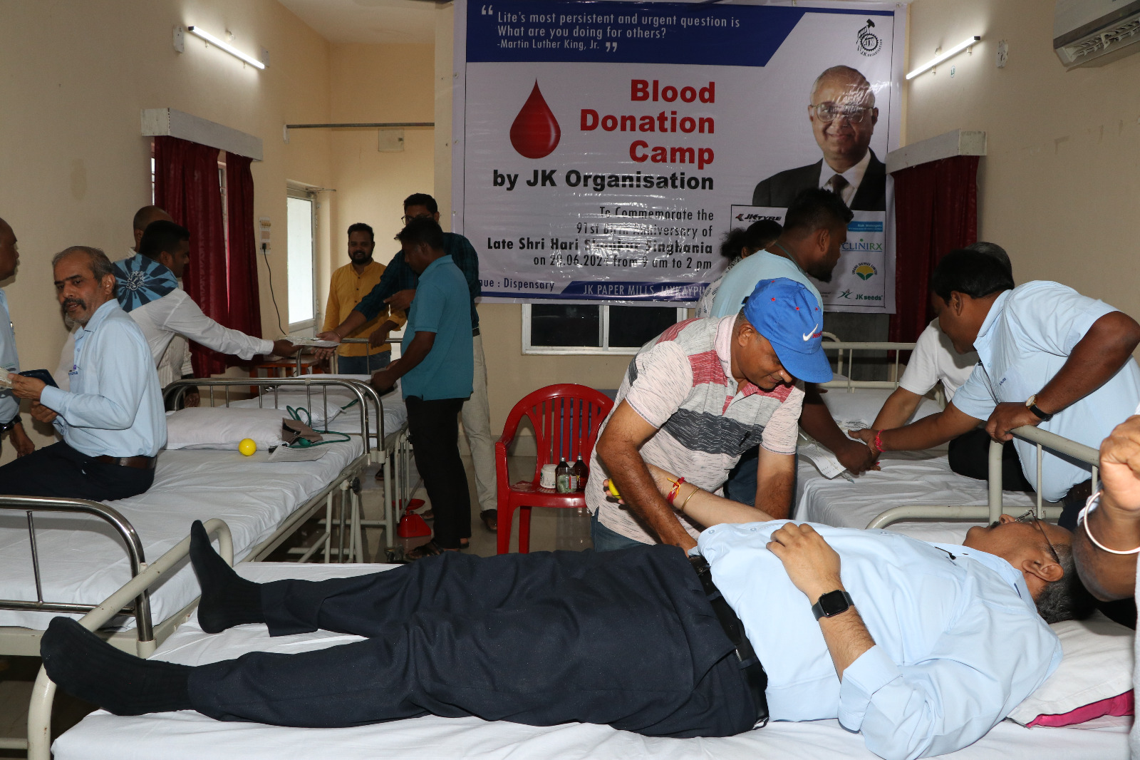 ଜେକେ କାଗଜ କଳ ର ମୁଖ୍ୟ ସ୍ୱାସ୍ଥ୍ୟ ଅଧିକାରୀ ଡ଼ଃ ଶ୍ରୀ କେ ଭି ଆର୍ ରାଓ ,ବରିଷ୍ଠ ଚିକିତ୍ସା ଅଧିକାରୀ ଡ଼ଃ ଶ୍ରୀମତି ପଦ୍ମା ୟେଶ୍ଵନ୍ତ୍ ଓ ଜିଲ୍ଲା ମୂଖ୍ୟ ଚିିତ୍ସାଳୟ ର କର୍ମଚାରୀ ଙ୍କ ମିଳିତ ତତ୍ତ୍ୱାବଧାନରେ ଜେକେ କାଗଜ କଳର କର୍ମଚାରୀ ମାନେ *୨୦୦ ୟୁନିଟ* ରକ୍ତ ଦାନ କରିଥିଲେ ଯାହାକୁ ଜେକେ କାଗଜ କଳ ର ମୂଖ୍ୟ ଶ୍ରୀ ବିନୟ ଦ୍ୱିବେଦୀ ଭୂରୀ ଭୂରୀ ପ୍ରଶଂସା କରିବା ସହ *”ରକ୍ତ ଦାନ ମହାପୁଣ୍ୟ”* ସ୍ଲୋଗାନ ସହ ଅଭିଭାଷଣ ରଖିଥିଲେ ଓ ରକ୍ତ ଦାତା ମାନଙ୍କୁ ଶୁଭେଚ୍ଚା ଜଣାଇଥିଲେ।