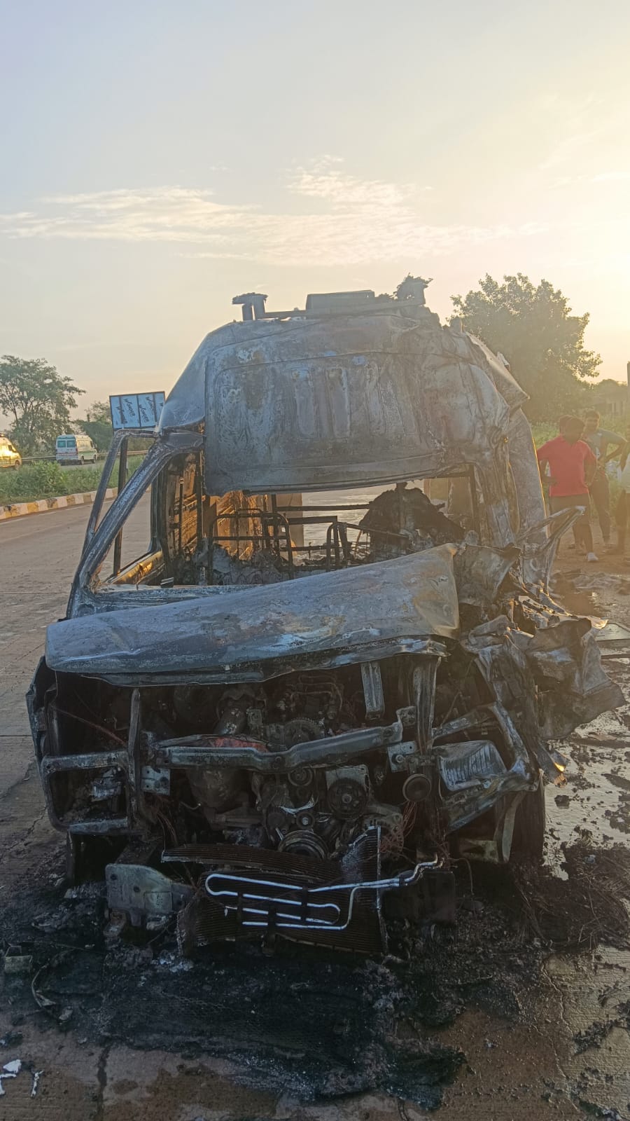 କଣ୍ଟେନର କୁ ପଛ ପଟୁ ଧକ୍କା ଦେଇ ଘଟଣା ସ୍ଥଳରେ ଜଳିଗଲା ଆମ୍ବୁଲାନ୍ସ, ରୋଗୀ ସମେତ 4 ଜଣ ଆମ୍ବୁଲାନ୍ସ କର୍ମଚାରୀ ଗୁରୁତର
