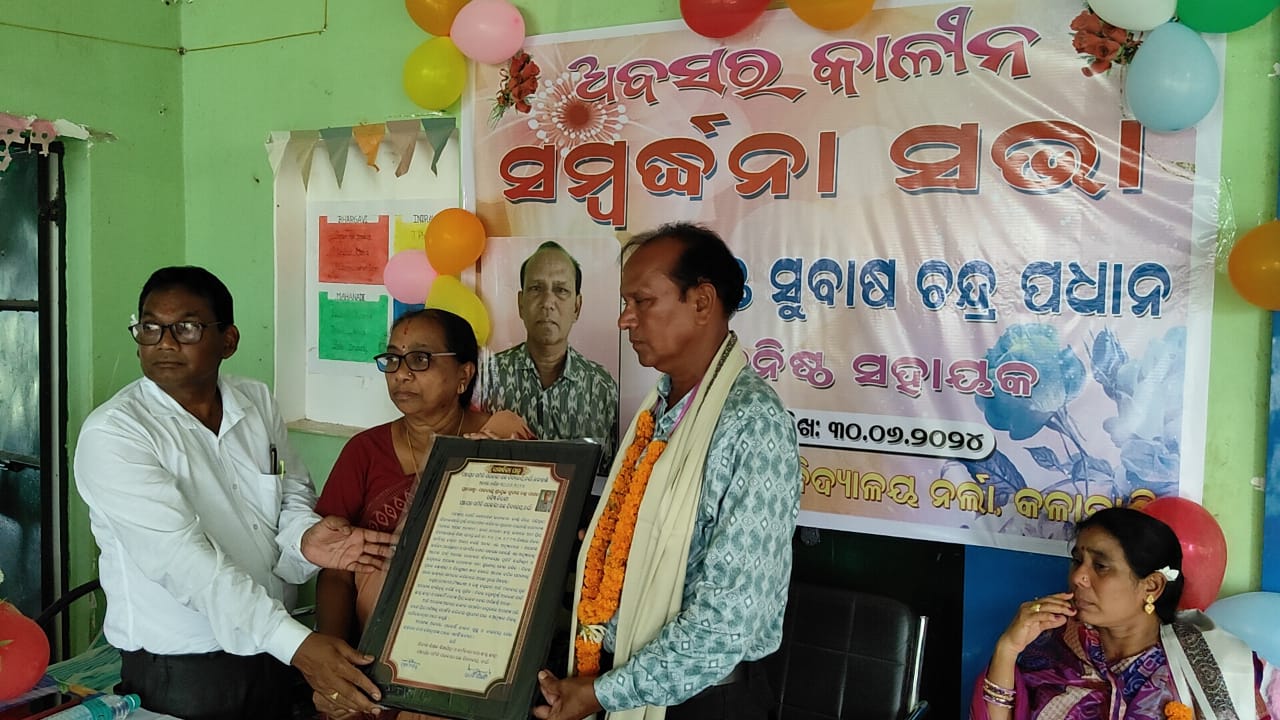 ରୁପ୍ରା, ୨/୭ (ମ ନି ସ) : ନର୍ଲା ବ୍ଲକ୍ ଅଧିନ ପଞ୍ଚାୟତ ସମିତି ସରକାରୀ ଉଚ୍ଚ ବିଦ୍ୟାଳୟ,ନର୍ଲାର କନିଷ୍ଠ ସହାୟକ ସୁବାଷ ଚନ୍ଦ୍ର ପଧାନଙ୍କ ଅବସରକାଳୀନ ସମ୍ୱର୍ଦ୍ଧନା ସଭା ବିଦ୍ୟାଳୟ ପରିସରରେ ସୋମବାର ଦିନ ଅନୁଷ୍ଠିତ