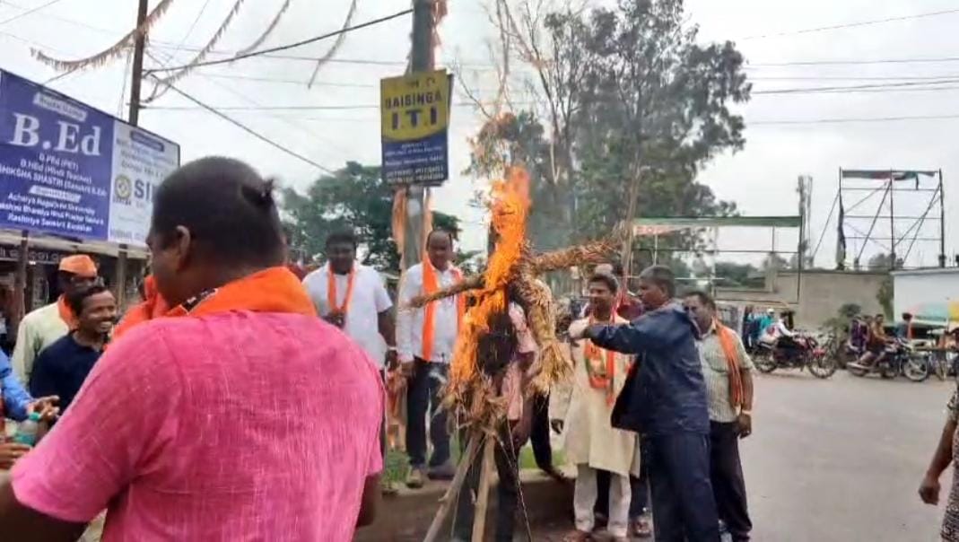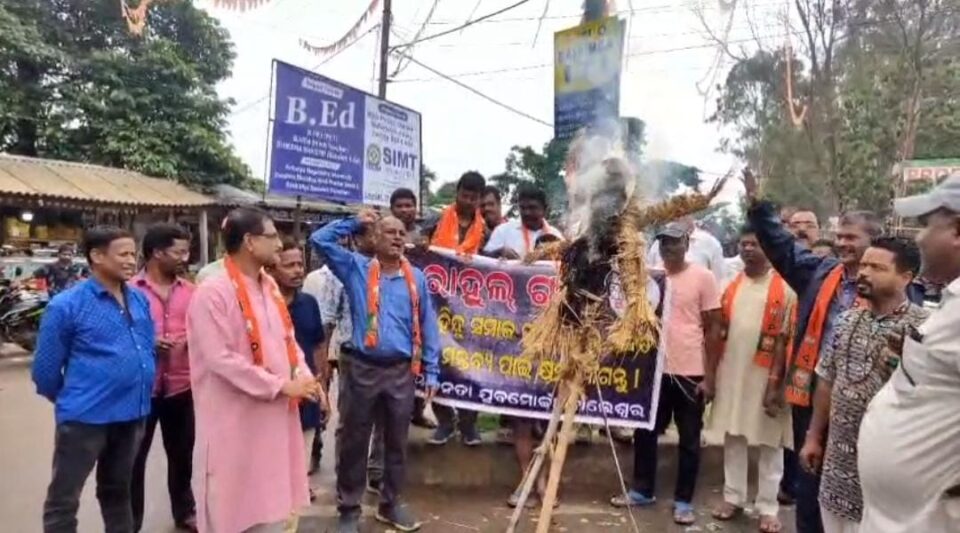 ବସ୍ତା ବିଜେପି ଯୁବ ମୋର୍ଚ୍ଚା ପକ୍ଷରୁ ହିନ୍ଦୁ ବିରୋଧୀ ମନ୍ତବ୍ୟ ପାଇଁ ରାହୁଲଙ୍କ କୁଶ ପୁତ୍ତଳିକା ଦାହ
