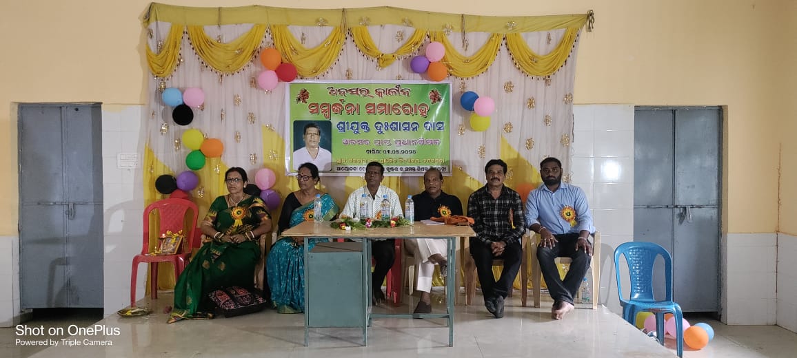 ଏଭଳି ଏକ ନିଆରା ଅବସରକାଳୀନ ସମ୍ବର୍ଦ୍ଧନା ସଭା ଆୟୋଜିତ ହୋଇଯାଇଛି କଳାହାଣ୍ଡି ଜିଲ୍ଲା ଲାଞ୍ଜିଗଡ ବ୍ଲକ କଦମ୍ବଗୁଡା ଓ ପାଣିମୁଣ୍ଡାଠାରେ । ଗୋବର୍ଦ୍ଧନପୁର କ୍ଲଷ୍ଟର ଅନ୍ତର୍ଗତ ମଧୁପୁର ଝାରବନ୍ଧ ପଡା ପ୍ରାଥମିକ ବିଦ୍ୟାଳୟର ପ୍ରଧାନଶିକ୍ଷକ ତଥା ଲାଞ୍ଜିଗଡ ବ୍ଲକ ପ୍ରାଥମିକ ଶିକ୍ଷକ ସଂଘର ପୂର୍ବତନ ସଭାପତି, ମୁଖ୍ୟମନ୍ତ୍ରୀ ଶିକ୍ଷା ପୁରସ୍କାର ପ୍ରାପ୍ତ ଆଦର୍ଶ ଶିକ୍ଷକ ଦୁଃଶାସନ ଦାସଙ୍କ ସମ୍ମାନରେ କଦମ୍ବଗୁଡା ପଞ୍ଚାୟତ କମ୍ୟୁନିଟି ହଲଠାରେ ଆୟୋଜିତ ସମ୍ବର୍ଦ୍ଧନା ସଭାରେ ମୁଖ୍ୟଅତିଥି ଭାବେ ଅତିରିକ୍ତ ଗୋଷ୍ଠୀ ଶିକ୍ଷାଧିକାରୀ ଦ୍ରୋଣ ରଣା ଯୋଗ ଦେଇଥିବାବେଳେ ସମ୍ମାନିତ ଅତିଥି ଭାବେ ଅତିରିକ୍ତ ଗୋଷ୍ଠୀ ଶିକ୍ଷାଧିକାରୀ ଲକ୍ଷ୍ମୀପ୍ରିୟା ମୁଦୁଲି ଯୋଗ ଦେଇଥିଲେ । ଲାଞ୍ଜିଗଡ ବ୍ଲକ ପ୍ରାଥମିକ ଶିକ୍ଷକ ସଂଘର ସଭାପତି ପ୍ରମୋଦ କୁମାର ମହାନ୍ତିଙ୍କ ଅଧ୍ୟକ୍ଷତାରେ ଅନୁଷ୍ଠିତ ସଭାରେ ଜିଲ୍ଲା ପ୍ରାଥମିକ ଶିକ୍ଷକ ସଂଘର ଉପସଭାନେତ୍ରୀ ଅର୍ଚ୍ଚନା ମିଶ୍ର, ବ୍ଲକ ଶିକ୍ଷକ ସଂଘର ସାଧାରଣ ସଂପାଦକ ଏମ୍. ସୁନ୍ଦରଶେଖର ପ୍ରମୁଖ ମଞ୍ଚାସୀନ ଥିଲେ । ଲାଞ୍ଜିଗଡ ବ୍ଲକ ପ୍ରାଥମିକ ଶିକ୍ଷକ ସଂଘ ଦ୍ୱାରା ଆୟୋଜିତ ଏହି କାର୍ଯ୍ୟକ୍ରମରେ ବରିଷ୍ଠ ଶିକ୍ଷକ ତଥା ଗୋବର୍ଦ୍ଧନପୁର ସିଆରସିସି ତପନ କୁମାର ଭୋଇ ସଭା ପରିଚାଳନା କରିଥିବାବେଳେ ବରିଷ୍ଠ ଶିକ୍ଷକ ନଗେନ୍ଦ୍ର ପଟ୍ଟନାୟକ ଧନ୍ୟବାଦ ଅର୍ପଣ କରିଥିଲେ । ଏହାପରେ ସନ୍ଧ୍ୟାରେ ଗୋବର୍ଦ୍ଧନପୁରଠାରୁ ଏକ ଭବ୍ୟ ଶୋଭାଯାତ୍ରାରେ ଶତାଧିକ ଶିକ୍ଷକ ଶିକ୍ଷୟିତ୍ରୀ ଓ ପୁରାତନ ଛାତ୍ରଛାତ୍ରୀ ତାଙ୍କୁ ଏକ ଖୋଲା ଛାତ ବିଶିଷ୍ଟ କାରରେ ତାଙ୍କ ଘର ପାଣିମୁଣ୍ଡା ପର୍ଯ୍ୟନ୍ତ ପାଛୋଟି ନେଇଥିଲେ । ବାଜା, ବାଣ ଓ ରୋଷଣୀ ସହିତ ଶିକ୍ଷକ ସଂଘ ଓ ପୁରାତନ ଛାତ୍ରଛାତ୍ରୀମାନଙ୍କ ଏହି ଭବ୍ୟ ଆୟୋଜନ ଜଣେ ଆଦର୍ଶ ଶିକ୍ଷକଙ୍କ ପ୍ରତି ଥିବା ଅମାପ ଭଲପାଇବାକୁ ଦର୍ଶାଉଥିଲା । ପାଣିମୁଣ୍ଡା ଗାଁରେ ତାଙ୍କୁ ଘରେଘରେ ବନ୍ଦାପନା ସହିତ ସ୍ୱାଗତ କରାଯିବା ପରେ ପୁରାତନ ଛାତ୍ରଛାତ୍ରୀଙ୍କ ଦ୍ୱାରା ଆୟୋଜିତ ସମ୍ବର୍ଦ୍ଧନା ସଭାରେ ତାଙ୍କୁ ଉଚ୍ଛ୍ୱସିତ ଭାବେ ସମ୍ବର୍ଦ୍ଧନା ଦିଆଯାଇଥିଲା । ଏଥିରେ ଶିକ୍ଷକ ଶ୍ରୀ ଦାସ ସପତ୍ନୀକ, ଅତିରିକ୍ତ ଗୋଷ୍ଠୀ ଶିକ୍ଷାଧିକାରୀ ଦ୍ରୋଣ ରଣା, ଲକ୍ଷ୍ମୀପ୍ରିୟା ମୁଦୁଲି, ଶିକ୍ଷାବିତ୍ ରାମଚନ୍ଦ୍ର ପରିଡା, ଲକ୍ଷ୍ମଣ ପରିଡା, ବରିଷ୍ଠ ନାଗରିକ ବିଶ୍ୱନାଥ ପଧାନ ପ୍ରମୁଖ ମଞ୍ଚାସୀନ ଥିଲେ । ପୁରାତନ ଛାତ୍ର ଜ୍ଞାନରଞ୍ଜନ ପରିଡା (ରାଜା), କୁମାର ଗୌରବ ପରିଡା, ମାନସ ରଞ୍ଜନ ପରିଡା, ଅମିଶ ରଞ୍ଜନ ପରିଡା, ଆଶିଷ ରଞ୍ଜନ ପରିଡା, ଶୁକଦେବ ଭୋଇ, ସସ୍ମିତା ପରିଡା, ଶୁଭସ୍ମିତା ପରିଡା, ଶୈଳେନ୍ଦ୍ର ପଧାନ, ତନୁ ବାଗଙ୍କ ସମେତ ଅନେକ ଶିକ୍ଷକ ଶିକ୍ଷୟିତ୍ରୀ, ଛାତ୍ରଛାତ୍ରୀ ଓ ସାଧାରଣ ଲୋକେ ସାମିଲ ହୋଇଥିଲେ ।