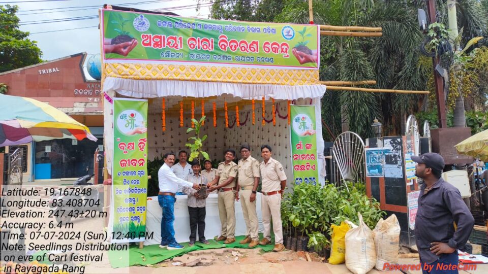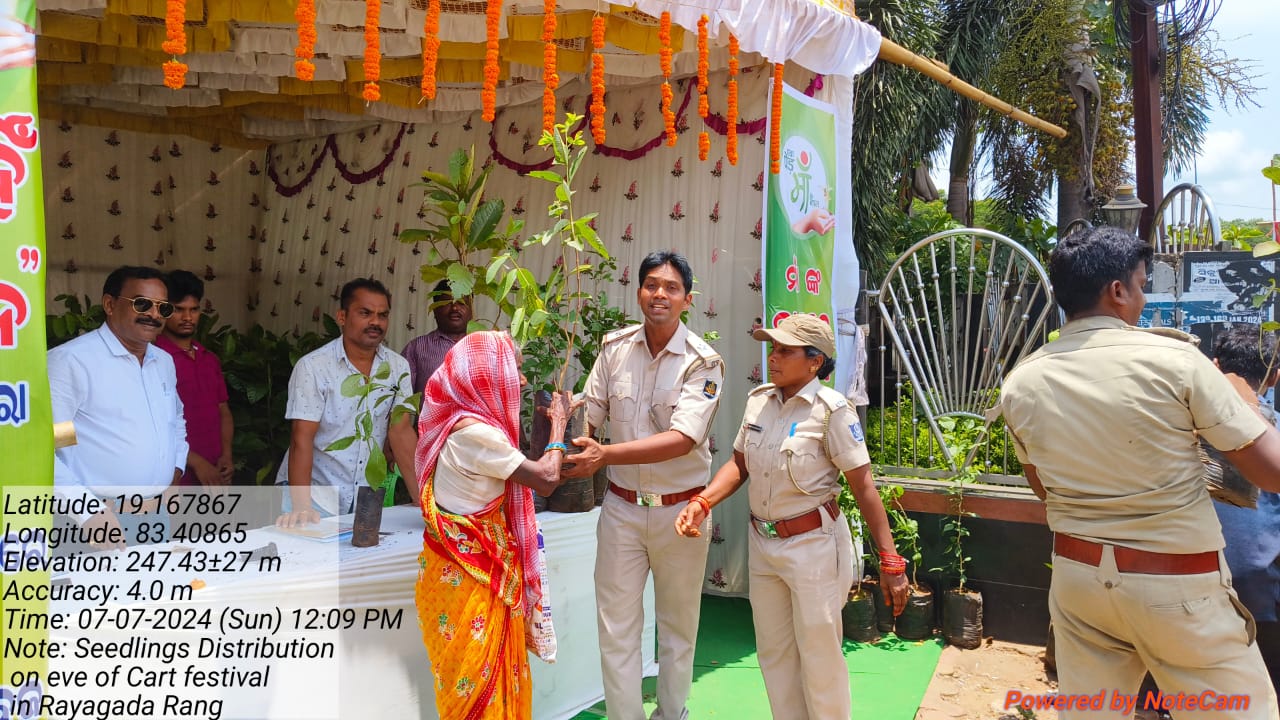 ରାୟଗଡା :- ରାୟଗଡ଼ ବନାଞ୍ଚଳ ତରଫରୁ ପବିତ୍ର ରଥ ଯାତ୍ରା ଉପଲକ୍ଷେ ସରକାରଙ୍କ ଦ୍ବାରା ଧାର୍ଯ୍ୟ ସୁଲଭ ମୂଲ୍ୟ ତଥା ଗୋଟିଏ ଚାରା ପ୍ରତି ଏକ ଟଙ୍କା ରେ ବଣ୍ଟନ କରାଗଲା । ରାୟଗଡ଼ ବନାଞ୍ଚଳ ଅଧିକାରୀ ଶ୍ରୀ କାମେଶ୍ବର ଆଚାରୀ ଜନସାଧାରଣ ଙ୍କୁ ଚାରା ବଣ୍ଟନ କରି ଏହି କର୍ଜ୍ୟକ୍ରମ ର ଶୁଭାରମ୍ଭ କରିଥିଲେ । ପବିତ୍ର ରଥ ଯାତ୍ରା କୁ ଆସୁଥିବା ଜନସାଧାରଣ ଙ୍କୁ ମାନବ ସମାଜ ରେ ବୃକ୍ଷ ର ମହତ୍ଵ ଅବଗତ କରାଇ ଏହି ବର୍ଷ ପ୍ରତ୍ୟେକ ବ୍ୟକ୍ତି ଅନୁନ୍ୟ ଗୋଟିଏ ବୃକ୍ଷ ର ଚାରା ନିଜ ମାଁ ଙ୍କ ନାମରେ ରୋପଣ