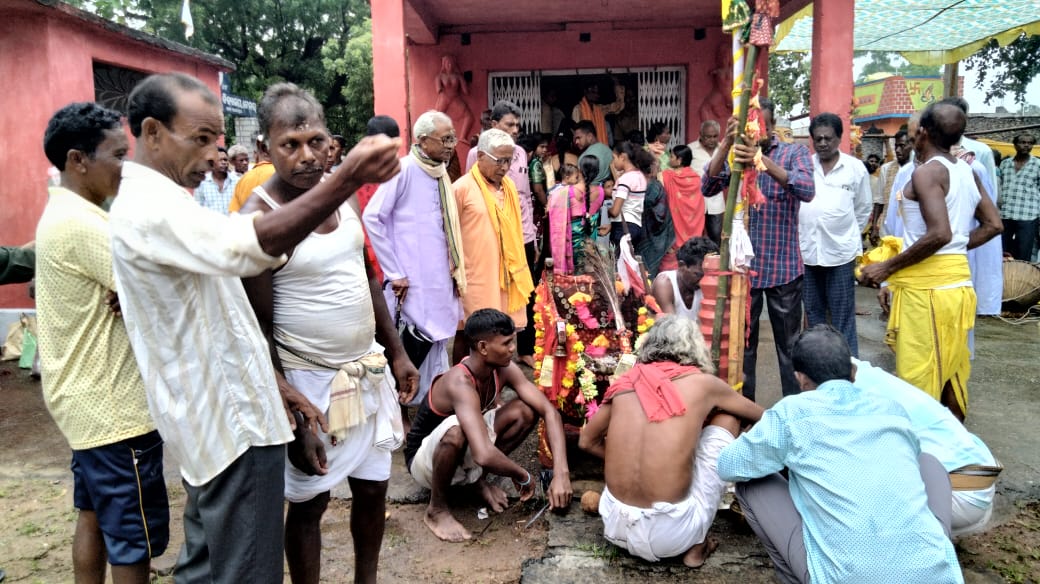 ସକାଳୁ ଗ୍ରାମର ଗୌନ୍ତିଆ ଚୁମନ ପାତ୍ର ଓ ପୂଜକ ଚିତ୍ରସେନ ମାଝୀଙ୍କ ଘରୁ ପୁଜା ସାମଗ୍ରୀ, ଦେବୀଙ୍କ ଲାଠି, କାଳିସୀ ବାଜା ବଜାଇ ଏକ ଶୋଭାଯାତ୍ରାରେ ଦେବୀ ପିଠକୁ ପହଞ୍ଚିବା ପରେ ଆମପାଣି ଗ୍ରାମରୁ ବୁଢାରଜା, ଡେଙ୍ଗାଗୁଡା ଗ୍ରାମରୁ ହିଙ୍ଗୁଲା, ମାଝିଗୁଡା ଗ୍ରାମରୁ ବରସାଲ ମାଝି ସହ