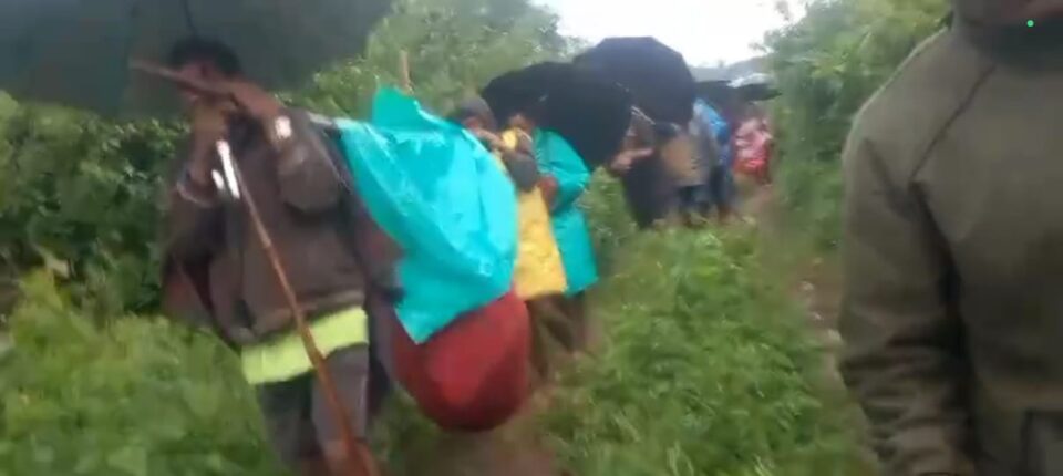 ବର୍ଷା ସାଜିଲା କାଳ, ଗାଁକୁ ରାସ୍ତା ନଥିବାରୁ ତିନି କିମି ଭାରରେ ବୁହା ହେଲେ ଆଦିବାସୀ ଗର୍ଭବତୀ