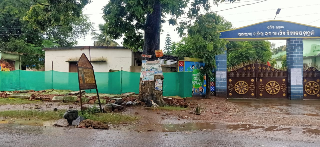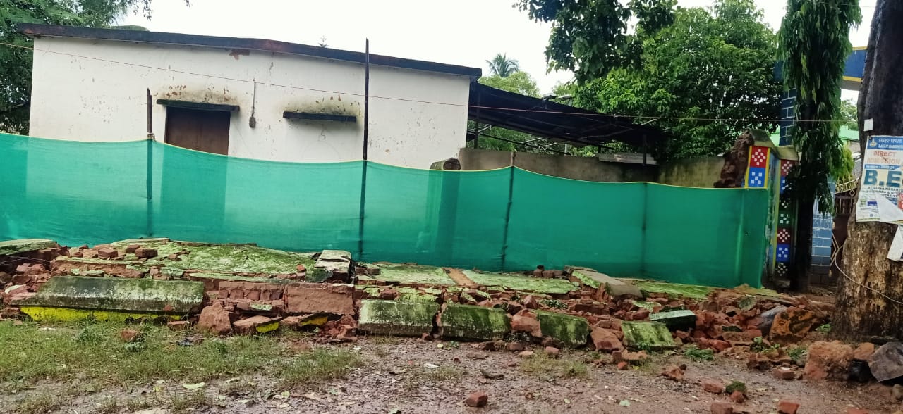 ବର୍ଷାରେ ଉପୁଡି ପଡିଲା ତେନ୍ତୁଳୀ ଗଛ, ଭୁସୁଡି ପଡିଲା ବିଦ୍ୟାଳୟ ପାଚେରୀ