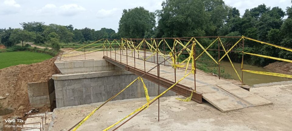ଲୋକେ କର୍ଲାମୁଣ୍ଡା ବ୍ଲକ କୁ ଯିବା ଆସିବା କରିଥାନ୍ତି l ତଥାପି ବିଭାଗ ପକ୍ଷରୁ କୌଣସି ସତର୍କତା ମୂଳକ ପଦକ୍ଷେପ ଗ୍ରହଣ କରାଯାଉ ନ ଥିବାରୁ ବିଭିନ୍ନ ମହଲରେ ଅସନ୍ତୋଷ ପ୍ରକାଶ ପାଇଛି l ବାରମ୍ବାର ଏ ନେଇ ଖବର ପ୍ରସାରଣ ପରେ ମଧ୍ୟ ପ୍ରଶାସନ ଘୋର ନିଦ୍ରା ରେ ! ଏଠାରେ ସୂଚନାଯୋଗ୍ୟ ଯେ, ଗ୍ରାମ୍ୟ ଉନ୍ନୟନ ସଂସ୍ଥା ପକ୍ଷରୁ ଟେଣ୍ଡର ଜରିଆରେ ଜନୈକ ଠିକାଦାରଙ୍କ ଦ୍ବାରା ୨କୋଟି ୭୧ ଲକ୍ଷ ୨୮ ହଜାର ୮ଶହ ଟଙ୍କା ଅଟକଳରେ ଜୁଲାଇ ୨୦୨୩ରେ ବ୍ରିଜ ନିର୍ମାଣ ଆରମ୍ଭ ହୋଇଥିଲା l ତେବେ ବର୍ଷା ସମୟରେ ବ୍ରିଜ ଛାତ ପଡ଼ି ପାରିବ ନାହିଁ ବୋଲି ବିଭାଗ ପକ୍ଷରୁ ଆଦେଶନାମା ଜାରି କରିଥିଲା l ଫଳରେ ବ୍ରିଜରେ ହେବାକୁ ଥିବା ତିନୋଟି ଛାତ ମଧ୍ୟ ରୁ ଉଭୟ ପାର୍ଶ୍ଵର ଦୁଇଟି ଛାତ ହୋଇ ପାରିଥିଲା l ଅନ୍ୟ ପଟେ ଲୋକଙ୍କ ପାଇଁ ଠିକାଦାରଙ୍କ ପକ୍ଷରୁ ୪ଫୁଟ ଓସାର ର ଅସ୍ଥାୟୀ ଲୁହା ବ୍ରିଜ ତିଆରି ହୋଇଥିବା ବେଳେ ଅସ୍ଥାୟୀ ରାସ୍ତା ବିପଦ ସୃଷ୍ଟି କରୁଛି l ଏହା ବ୍ୟତିତ ଉଭୟ ପାର୍ଶ୍ଵରେ ରାସ୍ତା ସମତଳ କରାଯାଇ ନ ଥିବାରୁ ବ୍ରିଜ ପାର ହୋଇ ରାସ୍ତା କୁ ଆସିବା ବହୁତ କଷ୍ଟକର ହୋଇପଡ଼ିଛି l