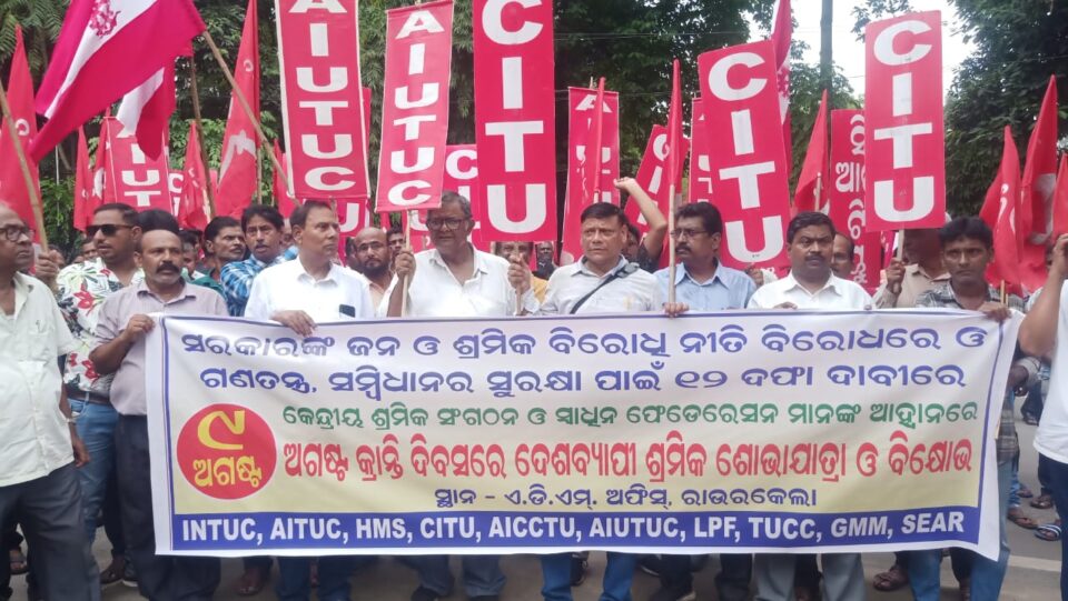 ଅଗଷ୍ଟ କ୍ରାନ୍ତି ଦିବସରେ ମିଳିତ କେନ୍ଦ୍ରୀୟ ଟ୍ରେଡ୍ ୟୁନିୟନ ମାନଙ୍କ ର ଶୋଭାଯାତ୍ରା ଓ ବିକ୍ଷୋଭ