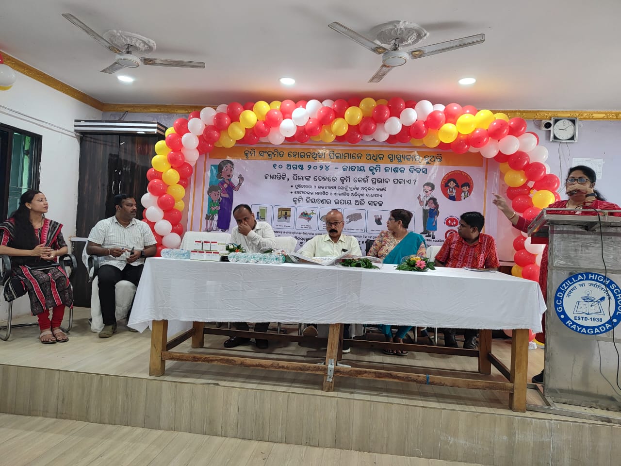 ରାୟଗଡ:-10.08.2024-ଆଜି ରାୟଗଡ ଜିଲ୍ଲା ମୁଖ୍ୟ ଚିକିତ୍ସା ତଥା ଜନ ସ୍ଵାସ୍ଥ୍ୟ ଅଧିକାରୀ ଡ଼ା ଲାଲ ମୋହନ ରାଉତରାୟ ଙ୍କ ଅଧ୍ୟକ୍ଷତାରେ ଜି ସି ଡ଼ି ଜିଲ୍ଲା ଉଚ୍ଚ ବିଦ୍ୟାଳୟରେ ଜାତୀୟ କୃମିନାଶକ ଦିବସ ର ଶୁଭାରମ୍ଭ ହୋଇଯାଇଛି | ଅନ୍ୟମାନଙ୍କ ମଧ୍ୟରେ ଅତିରିକ୍ତ ଜିଲ୍ଲା ଜନ ସ୍ବାସ୍ଥ୍ୟ ଅଧିକାରୀ (ପରିବାର କଲ୍ୟାଣ ) ଡା ମମତା ସାହୁ, ଅତିରିକ୍ତ ଜିଲ୍ଲା ଜନ ସ୍ବାସ୍ଥ୍ୟ ଅଧିକାରୀ (ରୋଗ ନିୟନ୍ତ୍ରଣ), ଜିଲ୍ଲା ଶିକ୍ଷା ଅଧିକାରୀ ଡ ବସନ୍ତ କୁମାର ନାୟକ , ଅତିରିକ୍ତ ଜିଲ୍ଲା ଶିକ୍ଷା ଅଧିକାରୀ ଶ୍ରୀ ଭଜନଲାଲ ମାଝୀ, ଜାତୀୟ ସ୍ୱାସ୍ଥ୍ୟ ମିଶନ ର ଜିଲ୍ଲା କାର୍ଯ୍ୟକ୍ରମ ପରିଚାଳକ ଶ୍ରୀ ରାଜେଶ୍ୱର ରାଓ ପଟ୍ଟନାୟକ, ଏବଂ ଜି ସି ଡ଼ି ଉଚ୍ଚ ବିଦ୍ୟାଳୟ ର ପ୍ରଧାନ ଶିକ୍ଷୟିତ୍ରୀ ସୁଶ୍ରୀ ନମିତା ପଧାନ ସମେତ ଅନ୍ୟ କର୍ମଚାରୀ ଉପସ୍ଥିତ ଥିଲେ ।
