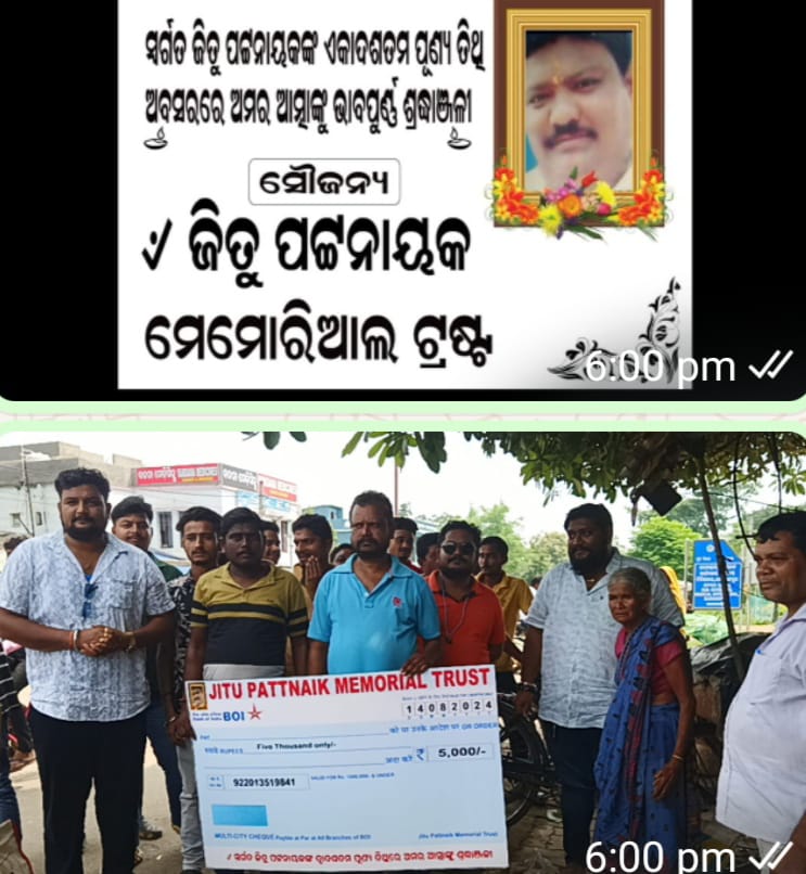 ବିଶିଷ୍ଟ ସମାଜସେବୀ ସ୍ବର୍ଗତ ଜିତୁ ପଟ୍ଟନାୟକଙ୍କ ଦ୍ଵାଦଶ ପୂଣ୍ୟତିଥି ଅବସରରେ ଅସହାୟ ଙ୍କୁ ଆର୍ଥିକ ସହାୟତାର ହାତ ବଢ଼ାଇଲା ଜିତୁ ପଟ୍ଟନାୟକ ମେମୋରିଆଲ ଟ୍ରଷ୍ଟ