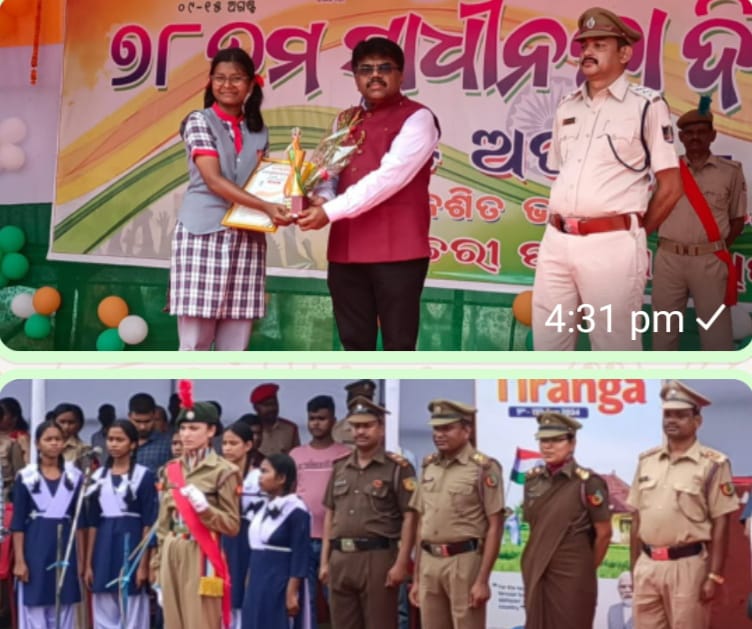 ଏହି ଅବସରରେ ୭୮ତମ ସ୍ୱାଧୀନତା ଦିବସ ପାଳନ ଉପଲକ୍ଷେ ପୂର୍ବରୁ ଅନୁଷ୍ଠିତ ହୋଇଥିବା ବିଭିନ୍ନ ପ୍ରତିଯୋଗିତା ର କୃତୀ ଛାତ୍ର ଛାତ୍ରୀ ଙ୍କୁ ପୁରସ୍କାର ଓ ପ୍ରସଂଶା ପତ୍ର ପ୍ରଦାନ କରିବା ସହ ବାମନଘାଟି ସଦର ମହକୁମା ରାଇରଙ୍ଗପୁର ଠାରେ ସରକାରୀ କାର୍ଯ୍ୟାଳୟ ଗୃହ ଆଲୋକୀକରଣ ପାଇଁ ରାଇରଙ୍ଗପୁର ତହସିଲ କାର୍ଯ୍ୟାଳୟ ଶ୍ରେଷ୍ଠ ବିବେଚିତ ହୋଇଥିବାରୁ ତହସିଲଦାର ଶ୍ରୀ ବିଶ୍ଵନାଥ ବିଶ୍ୱାଳ ଙ୍କୁ ମୁଖ୍ୟ ଅତିଥି ପୁଷ୍ପ ଗୁଚ୍ଛ ଓ ଟ୍ରଫି ପ୍ରଦାନ କରି ପୁରସ୍କୃତ କରିଥିଲେ.।