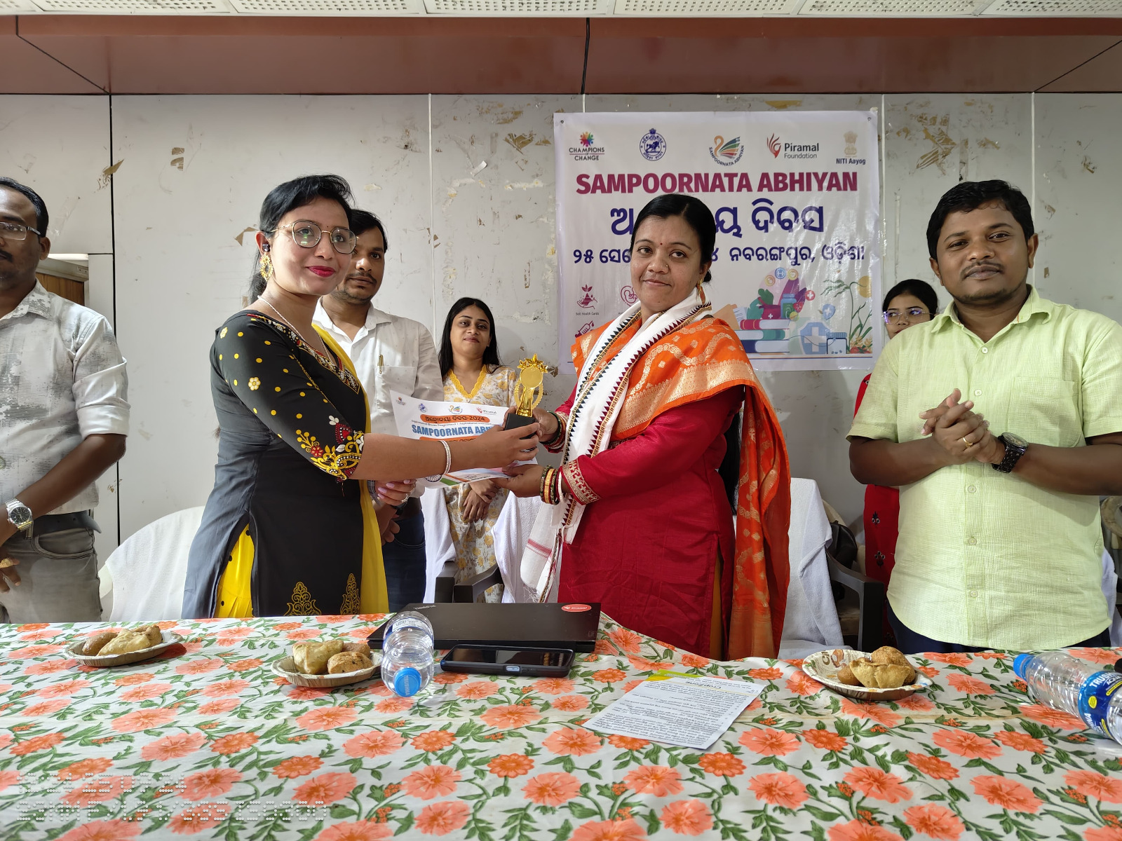ହୋଇଥିବା ସମ୍ପୂର୍ଣ୍ଣତା ଅଭିଯାନ କାର୍ଯ୍ୟକ୍ରମ ଉଦଯାପିତ ହୋଇଯାଇଛି | ଏହି ଅବସରରେ ବ୍ଲକ ର ବିଭିନ୍ନ ଗ୍ରାମରୁ ୧୦ ଜଣ ଚାଷୀଙ୍କୁ ମୃତ୍ତିକା ସ୍ୱାସ୍ଥ୍ୟ କାର୍ଡ ପ୍ରଦାନ, ଶ୍ରେଷ୍ଠ କୃଷକ ସାଥି ଭାବେ ଆଇତୁ ଭତ୍ରା, ଶ୍ରେଷ୍ଠ ସ୍ୱାସ୍ଥ୍ୟ କର୍ମୀ (ମହିଳା) ନାୟନା ରାଉତ, ଶ୍ରେଷ୍ଠ ଆଶା କର୍ମୀ କ୍ଷୀରମଣି ଭତ୍ରା, ଶ୍ରେଷ୍ଠ ଅଙ୍ଗନୱାଡି କର୍ମୀ ରେଖାରାଣୀ ମଣ୍ଡଳ, ଶ୍ରେଷ୍ଠ