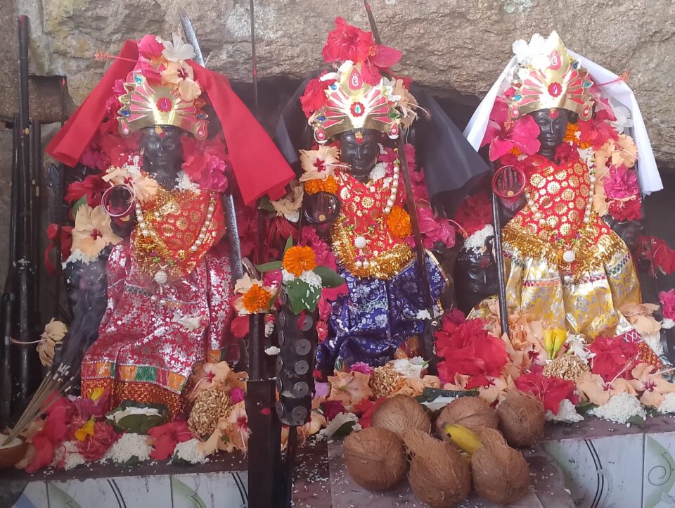ନବରଙ୍ଗପୁର:(୨୮|୯)(ରବି ନାରାୟଣ ମହାନ୍ତି)ବାର୍ଷିକ ଦଶହରା ନବରାତ୍ରି ପୂର୍ବରୁ କୃଷ୍ଣ ପକ୍ଷରେ ଏହି ପୂଜା ପୂର୍ବ କାଳରୁ ଚାଲିଆସିଛି lଉମରକୋଟ ବ୍ଲକ ଭଣ୍ଡାରିଗୁଡ଼ା ଗ୍ରାମପଞ୍ଚାୟତ ଅଧୀନରେ ଥିବା ପୋଡ଼ାଗଡ ଠାରେ ନାଳବଂଶ ରାଜାଙ୍କ ଇଷ୍ଟ ଦେବୀ ଗାଦୀମାଙ୍କଏହି ଅବସରରେ ମାଙ୍କୁ ନୂତନ ବସ୍ତ୍ର ଅଳଙ୍କାରରେ ସଜାଯାଏ ତିନିମୁଠା ତଥା ବୋରିଗାଁ ,ପରିଆ, ହୀରାପୁର ମୁଠା ରଇତ ଭକ୍ତ ଉପସ୍ଥିତି ଥିଲେ । ମୁଖ୍ୟ ପୂଜକ କୃଷ୍ଣ ପୂଜାରୀ , ହିରାସିଂ ପୂଜାରୀ , ବିର ପୂଜାରୀ, ରଘୁ ପୂଜାରୀ, ପୋଡାଗଡ ସେବାୟତ ଚାରିଟେବୁଲ ଟ୍ରଷ୍ଟ ର ସଭାପତି ଉର୍ଦ୍ଧ୍ବଵ ଚରଣ ନାୟକ, ପୋଡାଗଡ ପୀଠର ଗବେଷକ କୈଳାଶ ଚନ୍ଦ୍ର ବେହେରା ସମସ୍ତ ବସ୍ତ ଅଳଙ୍କାର ପ୍ରଦାନ କରିଥିଲେ । ମାଙ୍କ ନିକଟରେ ସମସ୍ତ ଭକ୍ତ ପ୍ରାକ ଦଶହରା ରେ ମା ଙ୍କ ନିକଟରେ ପ୍ରାଥନାକରିଥିଲେ ।ପୂର୍ବ କାଳରୁ ରାଜା ସ୍କନ୍ଦ ବର୍ମନଙ୍କ ଇଷ୍ଟ ଗାଦିମା ପାଞ୍ଚ ଶହ ପଚାଶ ଫୁଟ ଉପରଗଡ ର ଉଚ୍ଚତା ରହିଛି । ଏକ ଗୁମ୍ଫା ଭିତରେ ମାଙ୍କ ଉପସ୍ଥିତି ଭକ୍ତଙ୍କ ମନ ମୋହିଥାଏ ।ମନଜାଣି ବରଦେଇଥିବାରୁ ଭକ୍ତଙ୍କ ଗହଳି ସଦା ସର୍ବଦା ବଢି ଯାଇଥାଏ ।ଆସନ୍ତା ଅକ୍ଟୋବର ତିନି ତାରିଖରୁ ନିଷ୍ଟାର ସହିତ ପୋଡ଼ା ଗଡ ଠାରେ ସମସ୍ତ ମନ୍ଦିର ରେ ନବରାତ୍ରି ପୂଜା ଚାଲୁ ରହିବ l