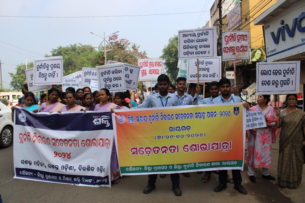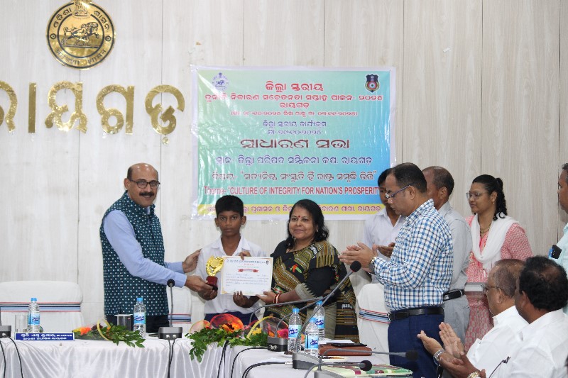 ରାୟଗଡ:–ତା.୦୩/୧୧– ରାୟଗଡା ଜିଲ୍ଲା ପ୍ରଶାସନ ତରଫରୁ ଦୁର୍ନୀତି ନିବାରଣ ସଚେତନତା ସପ୍ତାହ ପାଳିତ ହୋଇଯାଇଛି। ସ୍ଥାନୀୟ ଜିଲ୍ଲାପରିଷଦ ସମ୍ମିଳନୀ କକ୍ଷରେ ଜିଲ୍ଲାସ୍ଥରୀୟ କାର୍ଯ୍ୟକ୍ରମରେ ଅତିରିକ୍ତ ଜିଲ୍ଲାପାଳ ଭାସ୍କର ରଇତଙ୍କ ଅଧ୍ୟକ୍ଷତlରେ ଅନୁଷ୍ଠିତ ବୈଠକରେ ମୁଖ୍ୟ ଅତିଥି ଭାବେ ଆରୋକ୍ଷୀ ଅଧିକ୍ଷକ ରୟାଗଡ଼ ସ୍ୱାତୀ ଏସ କୁମାର ଯୋଗ ଦେଇଥିବା ବେଳେ ସମ୍ମାନିତ ଅତିଥି ଭାବରେ