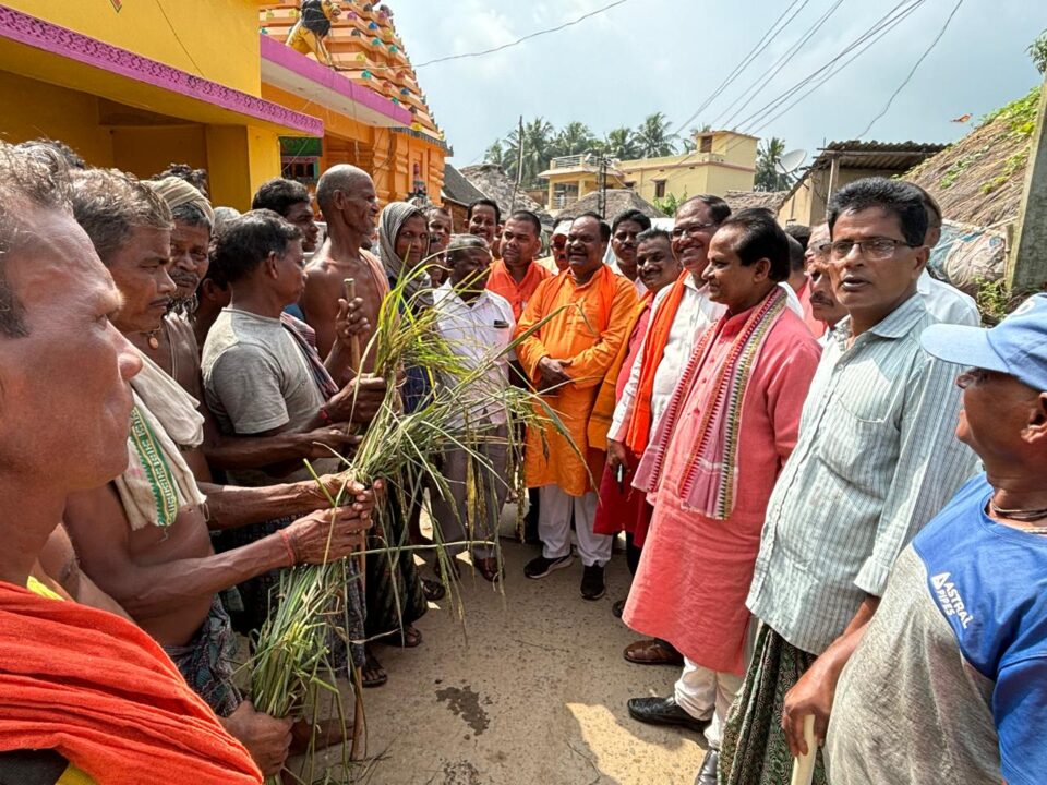 ରାଜ୍ୟ ବିଜେପି କୃଷକ ମୋର୍ଚ୍ଚା ରାଜ୍ୟସଭାପତି ରାଜନଗର ଅଞ୍ଚଳର ବାତ୍ୟାରେ ଫସଲର କ୍ଷୟକ୍ଷତି ପରିଦର୍ଶନ କଲେ