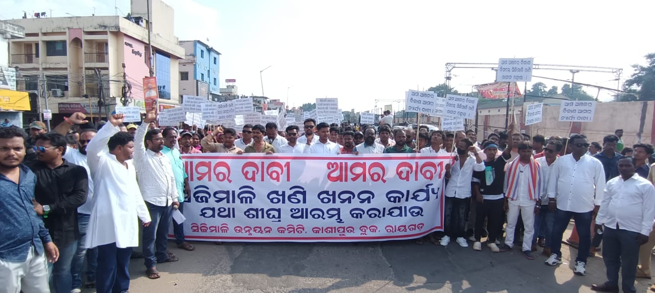 ରାୟଗଡା :- ରାୟଗଡା ଓ କଳାହାଣ୍ଡି ଜିଲ୍ଲାରେ ଥୂବା ସିଜିମାଳି ଖଣି ଖନନକୁ ଧୀରେ ଧୀରେ ପ୍ରଭାବିତ ଅଞ୍ଚଳର ଗ୍ରାମବାସୀଙ୍କ ପକ୍ଷରୁ ବିପୁଳ ସମର୍ଥନ ମିଳୁଥୁବା ଦେଖିବାକୁ ମିଳୁଛି। ଏହି ପରିପ୍ରେକ୍ଷୀରେ ଆଜି ଖଣି ପ୍ରଭାବିତ ଅଞ୍ଚଳର କାଶୀପୁର ବ୍ଲକର ସୁଙ୍ଗେର ପଞ୍ଚାୟତର ମାଲିପଦର, ଡୁମେରପଦର, କଣ୍ଟାମାଳ, ବୁଣ୍ଡେଲ, ଅଲିଗୁଣା, ସାଗବାରୀ, ପେଲନକୋଣା, କଟିବାଟା ଓ କଳାହାଣ୍ଡି ଜିଲ୍ଲା ଥୁଆମୂଳ ରାମପୁର ବ୍ଲକ ତଲାମପଦର ପଞ୍ଚାୟତର ତିଜିମାଳୀ ଓ ଚୂଲୁବାଡି ଭଳି ଦଶଟି ଗ୍ରାମକର ଲକେ ରାୟଗଡା ରେ ପହଞ୍ଚିଥିଲେ।ଏ ସମସ୍ତ ପ୍ରଭାବିତ ଅଞ୍ଚଳବାସି ଯୋଗ ଦେଇ ନିଜ ମତ ପ୍ରକାଶ ସହ ମୈତ୍ରୀ ତୁମେ ଆଗକୁ ବଡ଼ ଆମେ ସାଥ ଅଛୁ, ଆମ ଅଞ୍ଚଳ ର ବିକାଶ ଆମର ଦାବି, ସିଜିମାଳୀ ଖଣି ଖୋନନ କରିବା ଆମର ଦାବି,ସିଜିମାଳୀ ଖଣି ଶୀଘ୍ର ଖୋନନ କରିବା ଆମର ଦାବି ର ସ୍ଲୋଗାନ ରେ ରାୟଗଡା କୋମ୍ପି ଥିଲା।