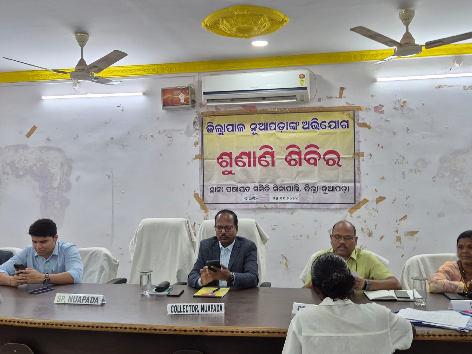 ନୂଆପଡା, ନୂଆପଡା ଜିଲ୍ଲା ସିନାପାଲି ପଞ୍ଚାୟତ ସମିତି ସମ୍ମିଳନୀ କକ୍ଷଠାରେ ନୂଆପଡା ଜିଲ୍ଲାପାଳ ମଧୁସୂଦନ ଦାଶ ଓ ଆରକ୍ଷୀ ଅଧିକ୍ଷକ ଗୁଣ୍ଡାଲା ରେଡ୍ଡୀ ରାଘବେନ୍ଦ୍ରଙ୍କ ଜିଲ୍ଲାସ୍ତରୀୟ ଯୁଗ୍ମ ଅଭିଯୋଗ ଶୁଣାଣି ଶିବିର ଅନୁଷ୍ଠିତ ହୋଇଯାଇଛି।