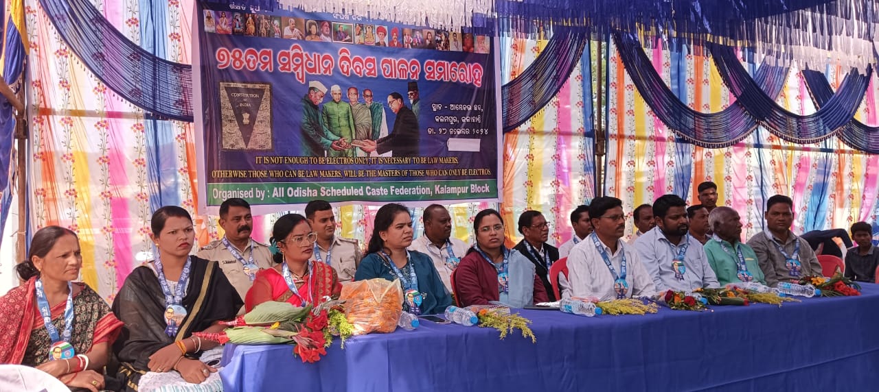 କଲମପୁର-୨୭/୧୧(ମସିହା) କଲମପୁର ବ୍ଲକ ଅନୁସୂଚିତ ଜାତି ପରିଷଦ ଆନୁକୁଲ୍ୟରେ ୭୫ତମ ସମ୍ବିଧାନ ଦିବସ କଲମପୁର ମୁଖ୍ୟ ବଜାର ପ୍ରାଙ୍ଗଣରେ ମହା ଧୁମଧାମରେ ପାଳନ ହୋଇଯାଇଛି। କଲମପୁର ବ୍ଲକ ଅନୁସୂଚିତ ଜାତି ବିକାଶ ପରିଷଦର ସଭାପତି ବଳରାମ ଦୁର୍ଗାଙ୍କ ସଭାପତିତ୍ଵ