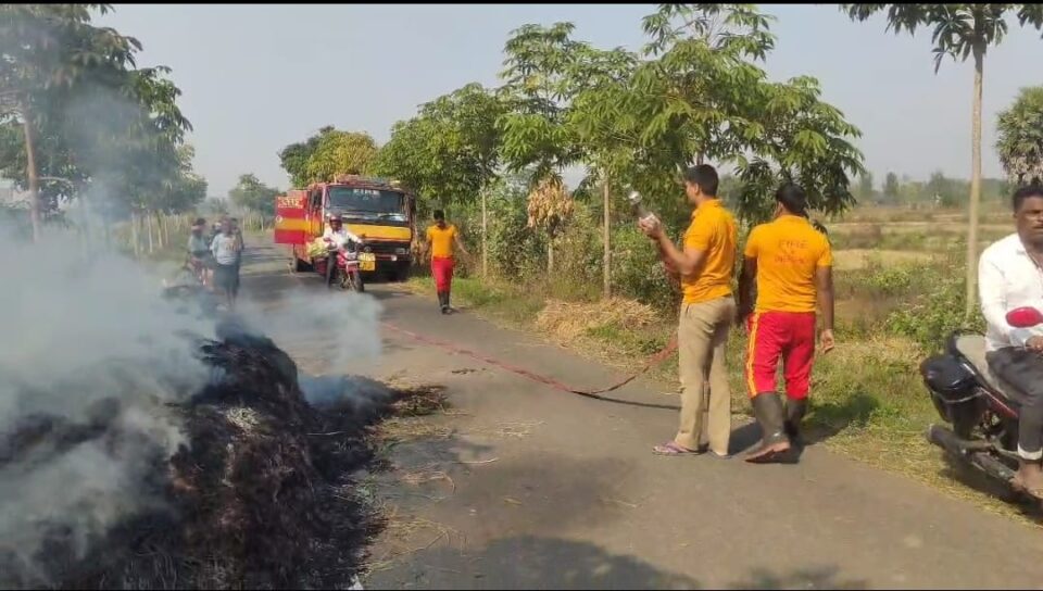ନବରଙ୍ଗପୁର :(୧୫/୧୨/୨୪)(ରବି ନାରାୟଣ ମହାନ୍ତି)ଆଖି ଆଗରେ ଜଳୀଗଲା ପାଞ୍ଚ ଭରଣ ଜମି ର ଧାନ ଫସଲ। କେହି କିଛି ବୁଝିବା ଆଗରୁ ନିଆଁ ର ପ୍ରକୋପ ବଢିବାରେ ଲାଗିଲା। ସଙ୍ଗେ ସଙ୍ଗେ ଧରାକୋଟ ଦମକଳ ବାହିନୀ କୁ ଖବର ଦେବା ପରେ ତୁରନ୍ତ ଦମକଳ ବାହୀନି ପହଞ୍ଚି ନିଆଁକୁ ଆୟତ୍ତ କରିବା ପାଇଁ ଚେଷ୍ଟା କରିଥିଲେ । ଧରାକୋଟ ବ୍ଲକର ରୁଗୁମୁ ନିକଟସ୍ଥ ବାଦୁଆ ଶଙ୍ଖ ନିକଟରେ ଥିବା ଡାକିବଜା ଗ୍ରାମର ଉଦୟନାଥ ଜେନା ଙ୍କ ଜମିର ଧାନ ଫସଲ ଅମଳ ପରେ ଶଙ୍ଖ ନିକଟସ୍ଥ ରାସ୍ତା ପାର୍ଶ୍ଵରେ ଏହାକୁ ଗଦାଇ ଥିଲେ । ରବିବାର ବାର ଘଣ୍ଟା ସମୟରେ ଅଚାନକ କେହି କିଛି ବୁଝିବା ଆଗରୁ ଧାନ ଗଦା ରେ ନିଆଁ ଦେଖିବାକୁ ମିଳିଥିଲା । ତୁରନ୍ତ ଦମକଳ ବାହୀନି ପହଞ୍ଚି ନିଆଁକୁ ଆୟତ୍ତ କରିବା ପାଇଁ ଚେଷ୍ଟା କରିଥିଲେ। ତଥାପି ସବୁକିଛି ଅମଳ ଫସଲ ନିଆଁରେ ଜଳି ପୋଡ଼ି ନଷ୍ଟ ହୋଇ ଯାଇଥିବା ଦେଖିବାକୁ ମିଳିଛି। ଏଣୁ ତୁରନ୍ତ ତାଙ୍କୁ ସରକାରୀ ସହାୟତା ପ୍ରଦାନ ପାଇଁ ଦାବୀ ହେଉଛି ।