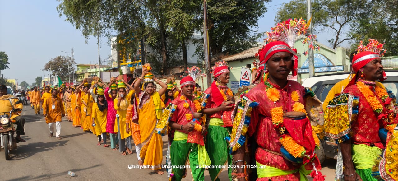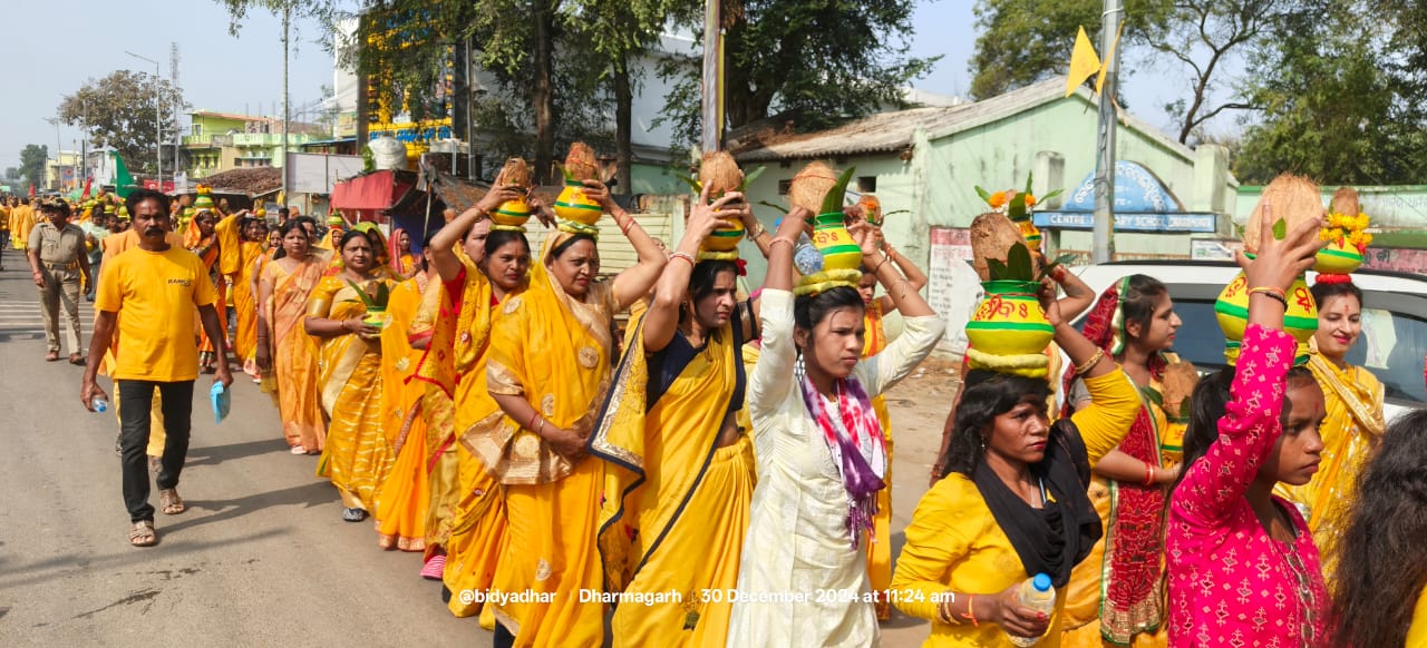 ନାରୀ ସଶକ୍ତିକରଣ ବର୍ଷ ୨୦୨୪-୨୫ ପରିପ୍ରେକ୍ଷୀରେ ରାଷ୍ଟ୍ର ଜାଗରଣ ଅଭିଯାନ, ଧର୍ମଗଡ଼ ପକ୍ଷରୁ ଧର୍ମଗଡ଼ କେବିଡି ଛକ ଶନି ମନ୍ଦିର ନିକଟରେ ୧୧କୁଣ୍ଡିୟ ଗାୟତ୍ରୀ ମହାଯଜ୍ଞ ଅନୁଷ୍ଠିତ ହେଉଛି। ଏହି ଅବସରରେ ଏକ ବିଶାଳ କଳସ ଯାତ୍ରା ଧର୍ମଗଡ଼ ସହର ପରିକ୍ରମା କରିଥିଲା।