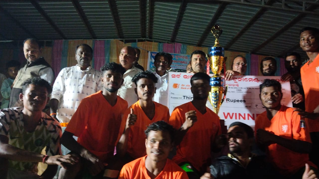 ଭବାନୀପାଟଣା ତରଫରୁ ପପୁ ମାଝୀ ୩ଗୋଲ, ଭବାନୀ ଶଙ୍କର ବେମାଲ ଏବଂ ରାଜୁ ମାଝୀ ଗୋଟିଏ ଲେଖାଁଏ ଗୋଲ ସ୍କୋର କରିଥିଲେ। ଜବଦ୍ଦଲପୁର ତରଫରୁ ମଣ୍ଟୁ ସେବକ ଗୋଟିଏ ଗୋଲ ସ୍କୋର କରିଥିଲେ। ଫାଇନାଲ ମ୍ଯାଚରେ ଧର୍ମଗଡ ବିଧାୟକ ସୁଧୀର ପାଟ୍ଟଯୋଷୀ ମୁଖ୍ୟ ଅତିଥି ଭାବେ ଯୋଗଦେଇ ଖେଳାଳୀମାନଙ୍କୁ ଟ୍ରଫି ଓ ପୁରସ୍କାର ରାଶି ପ୍ରଦାନ କରିଥିଲେ। ବିଜୟୀ ଖେଳାଳୀ ପାଇଁ ୩୦ହଜାର ଓ ରନର୍ସ ଅଫ ଖେଳାଳୀଙ୍କୁ ୨୦ ହଜାର ପୁରସ୍କାର ରାଶି ପ୍ରଦାନ କରାଯାଇଥିଲେ । ବ୍ଳକ ଲାଇଟ, ଡ୍ରେସିଂ ରୁମ ଏବଂ ଖେଳ ପଡିଆର ଆନୁଷଙ୍ଗିକ ଉନ୍ନତି ପାଇଁ କମିଟି ତରଫରୁ ବିଧାୟକଙ୍କୁ ଅନୁରୋଧ କରାଯାଇଥିଲା। ଖେଳ ଏବଂ ଖେଳ ପଡିଆର ବିକାଶ ପାଇଁ ଯାହା ଆବଶ୍ୟକ ସେଥିପ୍ରତି ସେ ନିଶ୍ଚୟ ଯତ୍ନବାନ ହେବେ ବୋଲି ବିଧାୟକ ଶ୍ରୀ ପାଟ୍ଟଯୋଷୀ ପ୍ରତିଶ୍ରୁତି ଦେଇଥିଲେ। ସୁଧୀର ଗୋପାଳ ମଞ୍ଚ ପରିଚାଳନା କରିଥିବାବେଳେ ସାମ୍ବାଦିକ ଲକ୍ଷ ଜ୍ୟୋତି ଜାଲ ଧନ୍ୟବାଦ ଅର୍ପଣ କରିଥିଲେ। ଏହି ଅବସରରେ କମିଟିର ସଭାପତି ପ୍ରବୀଣ ଦାସ, ସୁଧୀର ବାଗ,ମନୋଜ ଦାସ,ଡିଲେଶ୍ଵର ସାହୁ,ଧନୀରାମ ଗୋପାଳ, ଦୁଷ୍ମନ୍ତ ନାଏକ, ତୁଷାର ରଞ୍ଜନ ଦାସ, ନବିନ ଦାସ,ଅଭି ସୁନାନୀ ,ଗୁଣ ବୋଡକିଆ ପ୍ରମୁଖ ଉପସ୍ଥିତ ଥିଲେ। ଜଗା ମାଝୀ,ତାପସ ଦାସ, ଭବେନ୍ଦ୍ର ଗୋପାଳ,ସଞ୍ଜିତ ଦୁର୍ଗା ପ୍ରମୁଖ ଖେଳ ପରିଚାଳନା କରିଥିଲେ।