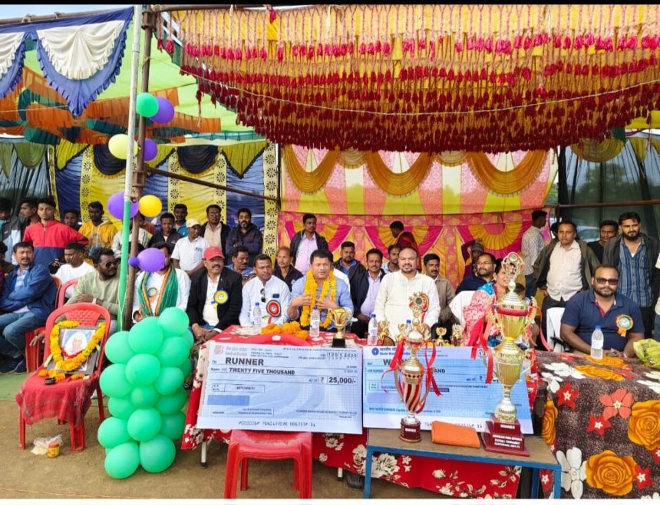 ନବରଙ୍ଗପୁର;(୧୩|୧)(ରବି ନାରାୟଣ ମହାନ୍ତି)ନବରଙ୍ଗପୁର ଜିଲ୍ଲା କୋଷାଗୁମୁଡା ବ୍ଳକ କରଚାମାଲ ଗ୍ରାମ ପଞ୍ଚାୟତ ରେ ଫୁଟବଲ ଟୁର୍ଣ୍ଣାମେଣ୍ଟ ବିଶ୍ଵ ଯୁବ ଦିବସ ଅବସରରେ ଉଦଯାପନୀ ଉତ୍ସବ ମହାସମାରୋହରେ ଅନୁଷ୍ଠିତ ହୋଇ ଯାଇଛି l ଏହି ଅବସରରେ ମୁଖ୍ୟ ଅତିଥି ଲୋକପ୍ରିୟ ବିଧାୟକ ମନୋହର ରନ୍ଧାରୀ ମୂଖ୍ୟ ବକ୍ତା ପ୍ରଦୀପ କୁମାର ମାଝୀ, ସମ୍ମାନୀତ ଅତିଥି ଜିଲ୍ଲା ପରିଷଦ ସଭ୍ୟ ଜୋନ– ୩ ର କ୍ଷୀରୋଦ ନାୟକ,ସରପଞ୍ଚ ଉମାବତୀ ନାୟକ, କୋଷାଗୁମୁଡା ସରପଞ୍ଚ ହାଡିବନ୍ଧୁ ମାଳି, କରଚାମାଲ ଯୋଗେନ୍ଦ୍ର ସ୍ଵାଇଁ (ବଡ ବାବୁ), ବଡ ଆମ୍ବଡା ସମିତି ସଭ୍ୟ ଶାନ୍ତି ବିଶୋୟୀ,ମୋତିଗାଁ ସମିତି ସଭ୍ୟ ତ୍ରିଲୋଚନ ଧାକଡ ପ୍ରମୂଖ ଉପସ୍ଥିତ ରହିଥିଲେ l ଉକ୍ତ ମ୍ୟାଚରେ କୋଟପାଡ ଦଳ ୱିନର ହୋଇଥିବା ବେଳେ କୁମୁଲିପୁଟ ଦଳ ରନର୍ ହୋଇଥିଲା lଉକ୍ତ ଟୁର୍ଣ୍ଣାମେଣ୍ଟ ରେ ଅନ୍ୟୁନ ଦୁଇ ହଜାର କ୍ରୀଡାପ୍ରେମୀ ଉପସ୍ଥିତ ରହି ଖେଳାଳି ମାନଙ୍କୁ ଉତ୍ସାହିତ କରାଇଥିଲେ l କୋଟପାଡ ୱିନର ଦଳ କୁ ୫୦ହଜାର ଟଙ୍କା ସହ ଟ୍ରଫି ଓ କୁମୁଲିପୁଟ ରନର୍ ଦଳ କୁ ୨୫ ହଜାର ଟଙ୍କା ସହ ଟ୍ରଫି ମୁଖ୍ୟ ଅତିଥି ସମ୍ମାନୀତ ଅତିଥି ମାନଙ୍କ ଦ୍ଵାରା ପ୍ରଦାନ କରାଯାଇଥିଲା l