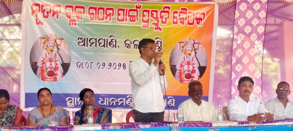 ଆଗାମୀ ଦିନରେ କେନ୍ଦ୍ର ଓ ରାଜ୍ୟ ସରକାର ନିର୍ବାଚନ ମଣ୍ଡଳୀ ଓ ବ୍ଲକ ସମ୍ପ୍ରସାରଣ ନେଇ ଯୋଜନା କରୁଥିବା ନେଇ ରାଜସ୍ୱ ମନ୍ତ୍ରୀ ଙ୍କ ଗଣମାଧ୍ୟମ ରେ କହିବା ପରେ ବିଭିନ୍ନ ଜିଲ୍ଲାରେ ବ୍ଲକ ଦାବି ନେଇ ବିଭିନ୍ନ ସଙ୍ଗଠନ ପକ୍ଷରୁ ପ୍ରସ୍ତୁତି ବୈଠକ କରି ବ୍ଲକ ଦାବି କୁ ଜୋରଦାର କରାଯାଇଛି। ଏହି ପରିପ୍ରେକ୍ଷୀରେ ଶନିବାର କଳାହାଣ୍ଡି ଜିଲ୍ଲା କୋକସରା ବ୍ଲକ ଆମପାଣି ପଞ୍ଚାୟତ ଆମପାଣି ଧାନ ମଣ୍ଡି ରେ ଆମପାଣି କୁ ବ୍ଲକ ଦାବି ନେଇ ୧୦ ଗୋଟି ପଞ୍ଚାୟତ ର ପ୍ରତିନିଧିମାନେ ମେଳି ବାନ୍ଧି ପ୍ରସ୍ତୁତି ବୈଠକରେ କୋକସରା ବ୍ଲକ ରୁ ଆମପାଣି ପଞ୍ଚାୟତ ସଦର ମହକୁମା କୁ ଏକ ନୂତନ ବ୍ଲକ ଘୋଷଣା ଦାବି ରେ ଅଞ୍ଚଳବାସୀ ଦାବି କରିଛନ୍ତି। ଆମପାଣି ବ୍ଲକ ପାଇଁ କୋକସରା ର ଆମପାଣି, ବଡ଼ ପୋଡ଼ାଗୁଡା,ଡୁଡୁକାଠେଙ୍ଗା, ମହିମା, ବରାଡ଼ଙ୍ଗା,କାଉଡୋଳା, ଗୋତମୁଣ୍ଡା, ସାନ ପୋଡ଼ାଗୁଡା, ଜୟପାଟଣା ବ୍ଲକ ର ବଡ଼ ପୁଝାରି ଗୁଡା ଓ ଉଛୁଲା ୧୦ ପଞ୍ଚାୟତ କୁ ନେଇ ନୂତନ ଆମପାଣି ବ୍ଲକ ଦାବି କରାଯାଇଛି। ଅନୁଷ୍ଠିତ ବୈଠକ ରେ ଯୁବ ଆଦିବାସୀ ନେତା ଋତୁରାଜ ମାଝୀ ଙ୍କ ସଭାପତିତ୍ୱ ରେ ଆମପାଣି ସରପଞ୍ଚ ରୁକ୍ମଣୀ ବାଣୁଆ,ବଡ଼ ପୋଡ଼ାଗୁଡା ଯମୁନା ନାଏକ,ବରାଡ଼ଙ୍ଗା ସରପଞ୍ଚ ନିରୂପମା ସେଠି,ଡୁଡୁକାଠେଙ୍ଗା ସରପଞ୍ଚ ହରିପ୍ରିୟା ନାଗ,କାଉଡୋଳା ସରପଞ୍ଚ ଦେବୀସିଂ ତାଣ୍ଡି, ଆଇନଜୀବୀ ମନୋଜ ନାଏକ, ବିଭିନ୍ନ ପଞ୍ଚାୟତ ର ସଚେତନ ନାଗରିକ ବନମାଳୀ ବାଗ,ଚକ୍ରଧର ନାଏକ ,ଅର୍ଜୁନ ଅଗ୍ରୱାଲ, ଖଗେଶ୍ୱର ପାଣିଗ୍ରାହୀ, ବିରେନ୍ଦ୍ର କନ୍ଧ, ଧନୁ ଦୁର୍ଗା, ପ୍ରଦୀପ ସାହୁ, ପୂର୍ବତନ ସରପଞ୍ଚ ଆମପାଣି ଟିକିଚନ୍ଦ୍ର ଧ.ମାଝୀ, ଧନୁ ଦୁର୍ଗା, ସୁଧୀର ପୁଝାରି,ଧର୍ମାନନ୍ଦ ନାଏକ,ବୈଷ୍ଣବ ମାଝୀ, ପୂର୍ବତନ ସରପଞ୍ଚ ମହିମା କ୍ଷେତୁରାମ ପାତ୍ର, ଧାନଫୁଲ ମାଝୀ, କୁମୁଦ ଚନ୍ଦ୍ର ପୁଝାରି, ହରିଶ୍ଚନ୍ଦ୍ର ନାଏକ, ତୁଲାରାମ ନାଏକ ପ୍ରମୁଖ ଉପସ୍ଥିତ ରହି ଆଗାମୀ ଦିନରେ ବ୍ଲକ ଦାବି ନେଇ ଉପ ଜିଲ୍ଲାପାଳ, ଜିଲ୍ଲାପାଳ ଓ ଭୁବନେଶ୍ୱର ବିଧାନସଭା ରେ ମଧ୍ୟ ବ୍ଲକ ପାଇଁ ବିଭିନ୍ନ ପର୍ଯ୍ୟାୟରେ ଦାବିପତ୍ର ପ୍ରଦାନ କରାଯିବା ସହ ବ୍ଲକ ଦାବି କୁ କ୍ରିୟାଶୀଳ କରିବା ପାଇଁ ଏକ କ୍ରିୟାନୁଷ୍ଠାନ କମିଟି ଗଠନ କରାଯାଇଛି।କାର୍ଯ୍ୟକ୍ରମ କୁ ମଞ୍ଚ ସଂଯୋଜନା ବିଘ୍ନେଶ୍ବର ନାଏକ ପରିଚାଳନା କରିଥିଲେ। ଆମପାଣି ବ୍ଲକ ଗଠନ ଦାବି କମିଟି ର ସଦସ୍ୟ ଯୁବକ ସୁରେଶ ସାହୁ, ବିଜୟ ପଣ୍ଡା, ନାଗେଶ୍ୱର ମହାପାତ୍ର, ବିନୋଦ ସିଂ, କେଶବ ବେନୁପାଣି, ଅଜୟ ପଣ୍ଡା, ତାପସ ରାୟ ସମେତ ୧୦ ପଞ୍ଚାୟତ ର ଶତାଧିକ ପ୍ରତିନିଧି ମାନେ ଉପସ୍ଥିତ ରହି ଦାବି କୁ ଯଥାର୍ଥ କହିବା ସହ ନୂତନ ବ୍ଲକ ଗଠନ ହେଲେ ଆଦିବାସୀ ଅଧ୍ୟୁଷିତ ଅଞ୍ଚଳବାସୀ ଙ୍କ ଆର୍ଥିକ, ସାମାଜିକ, ବ୍ୟବସାୟିକ ଉନ୍ନତି ହେବ ବୋଳି ମତ ପ୍ରକାଶ କରିଛନ୍ତି।