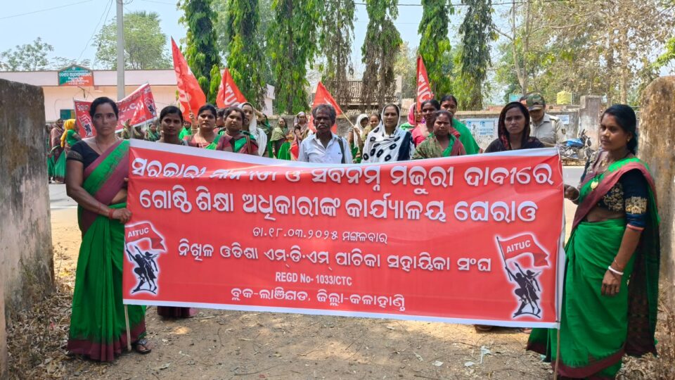 ଲାଞ୍ଜିଗଡ଼,୧୮/୦୩(ମନିସ)-ନିଖିଳ ଓଡ଼ିଶା ମଧ୍ୟାହ୍ନ ଭୋଜନ ପାଚିକା ସହାୟିକା ସଂଘ ପକ୍ଷରୁ ୧୫ ଦଫା ଦାବି ପୂରଣ ଉଦ୍ଦେଶ୍ୟରେ ଆଜି ଲାଞ୍ଜିଗଡ ବ୍ଲକ ମୁଖ୍ୟାଳୟ ବିଶ୍ୱନାଥପୁରଠାରେ ଏକ ବିଶାଳ ଶୋଭାଯାତ୍ରା ସହିତ ଗୋଷ୍ଠୀ ଶିକ୍ଷାଧିକାରୀଙ୍କ ଜରିଆରେ ମୁଖ୍ୟମନ୍ତ୍ରୀଙ୍କୁ ଦାବିପତ୍ର ପ୍ରଦାନ କରାଯାଇଛି। ଅଲ ଇଣ୍ଡିଆ ଟ୍ରେଡ ୟୁନିୟନ କଂଗ୍ରେସ ସହିତ ଅନୁବନ୍ଧିତ ନିଖିଳ ଓଡ଼ିଶା ପାଚିକା ସହାୟିକା ସଂଘର ଡାକରାରେ ଆଜି ବିଶ୍ୱନାଥପୁର