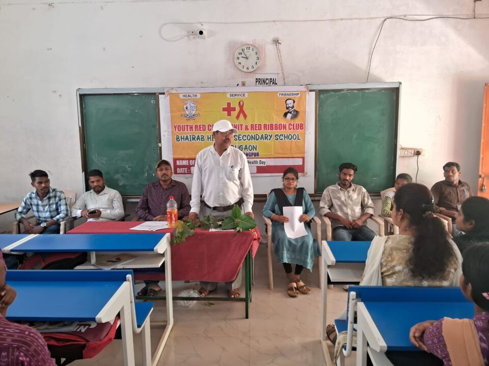 ଡାବୁଗାଁ, ୭/୪ (ମ.ନି.ସ.)- ନବରଙ୍ଗପୁର ଜିଲ୍ଲା ଡାବୁଗାଁ ବ୍ଳକ ସଦରମହକୁମା ରେ ଥିବା ଭୈରବ ଉଚ୍ଚ ମାଧ୍ୟମିକ ବିଦ୍ୟାଳୟ ଗୃହରେ ଆଜି ସକାଳ ୯ ଘଣ୍ଟା ସମୟରେ ଛାତ୍ରଛାତ୍ରୀ ମାନଙ୍କୁ ନେଇ ବିଶ୍ଵ ସ୍ଵାସ୍ଥ୍ୟ ଦିବସ ପାଳିତ ଅବସରରେ ବ୍ୟାପକ ସଚେତନ କରାଯାଇଥିଲା l ଅଧ୍ୟାପକ ସନ୍ତୋଷ ସିଂ ଲାଲ ସ୍ୱାସ୍ଥ୍ୟ ଦିବସ ରେ ସ୍ଵାସ୍ଥ୍ୟ ର ଯତ୍ନ ନେଇ