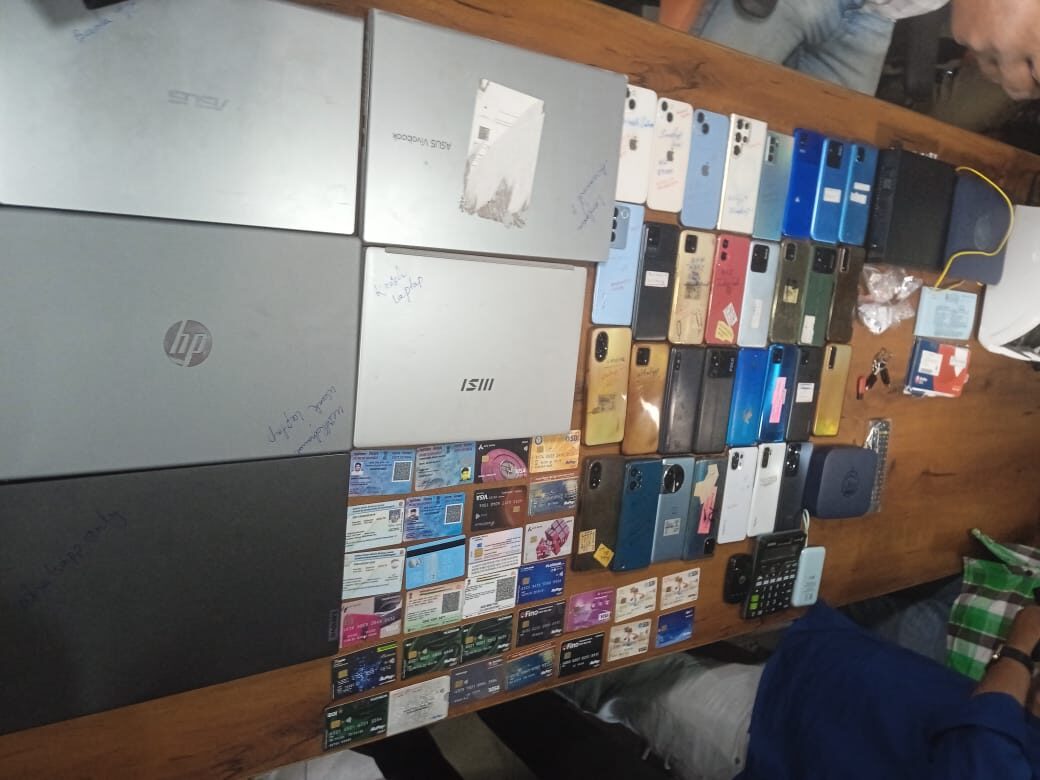 ଏହି ୯ ଜଣ ସାଇବର ଅପରାଧୀଙ୍କ ଠାରୁ ଜବତ୍ ହୋଇଥିବା ଜିନିଷଗୁଡିକ ମଧ୍ଯରେ ରହିଛି ୫ଟି ଲାପଟପ୍, ୩୧ଟି ମୋବାଇଲ୍ ଫୋନ୍, ୬୮ଟି ନକଲି ସିମ୍ କାର୍ଡ, ୨ଟି ଜିଓ ଫାଇବର ରାଉଟର, ୨୦ଟି ନକଲି ପରିଚୟ ପତ୍ର (ଆଇ ଡି ପ୍ରୁଫ), ୪ଟି ବ୍ୟାଙ୍କ ପାସବୁକ୍ ଏବଂ ଚେକ୍ ବୁକ୍, ୨ଟି ପେନ୍ ଡ୍ରାଇଭ୍, ୧୯ଟି ଏଟିଏମ୍/ଡେବିଟ୍ କାର୍ଡ, ଗୋଟିଏ ମାରୁତି ସ୍ୱିଫ୍ଟ କାର୍ ଏବଂ ଗୋଟିଏ ସ୍କୁଟି ଯାହାର ରେଜିଷ୍ଟ୍ରେସନ ନମ୍ବର ସିଜି ୧୩ ଏଏଚ୍ ୦୬୫୯ (CG 13AH 0659)।