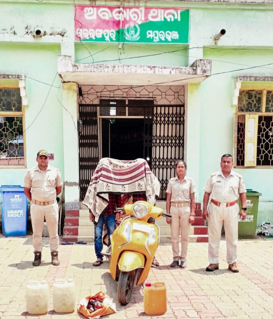 ମୟୂରଭଞ୍ଜ -୧୩/୦୪ // ଅବକାରୀ ଅଧିକ୍ଷକ ଶ୍ରୀ ପ୍ରଶାନ୍ତ କୁମାର କହଁରଙ୍କ ନିର୍ଦ୍ଦେଶକ୍ରମେ ଓ ରାଇରଙ୍ଗପୁର ଅବକାରୀ ଉପ-ଅଧିକ୍ଷକ ଶ୍ରୀ ସୌମ୍ୟରଞ୍ଜନ ବେହେରାଙ୍କ ପ୍ରତ୍ୟକ୍ଷ ତତ୍ତ୍ୱାବଧାନରେ ରାଇରଙ୍ଗପୁର ଉପଖଣ୍ଡ ଅବକାରୀ ରେଞ୍ଜ ପକ୍ଷରୁ ରାଇରଙ୍ଗପୁର ଅବକାରୀ ନିରୀକ୍ଷକ ଶ୍ରୀ ବିନୟ ପ୍ରକାଶ ତୀର୍କୀ ଓ ରାଇରଙ୍ଗପୁର ଅବକାରୀ ଥାନା ଭାରପ୍ରାପ୍ତ ଅଧିକାରୀ ଶ୍ରୀ ପ୍ରହଲ୍ଲାଦ ସାମଲ ଓ ଷ୍ଟାଫମାନଙ୍କୁ ନେଇ ଗଠିତ ଏକ ସ୍ୱତନ୍ତ୍ର ଟିମ ଦ୍ଵାରା ରାଇରଙ୍ଗପୁର ସହରାଞ୍ଚଳ ଥାନା ଅନ୍ତର୍ଗତ ଗଢ଼, ପୁରୁଣାଘାଟି ଓ ନୂଆଗାଁ ଗ୍ରାମ ଅଞ୍ଚଳରେ ଚଢ଼ାଉ କରାଯାଇ ୪୯ ଲିଟର ଦେଶୀ ରନ୍ଧା ମଦ , ୩.୦୬୦ ଲିଟର ବିଦେଶୀ ମଦ ଏବଂ ଗୋଟିଏ ସ୍କୁଟି (ଓଡି-୧୧ଟି-୩୨୯୨) ଜବତ କରାଯିବା ସହିତ ୦୨ ଜଣଙ୍କୁ ଗିରଫ କରାଯାଇଛି l ଗିରଫ ଆସାମୀମାନେ ହେଲେ ପୁରୁଣାଘାଟି ଗ୍ରାମର ମଳୟ ବସନ୍ତ ଦାସ ଓ ନୂଆଗାଁ ଗ୍ରାମର ସୁଦର୍ଶନ ମହନ୍ତ l ଜବତ ହୋଇଥିବା ମଦ ଓ ସ୍କୁଟିର ଆନୁମାନିକ ମୂଲ୍ୟ ୭୦ ହଜାର ଟଙ୍କାରୁ ଉର୍ଦ୍ଧ୍ବ ହେବ ବୋଲି ଅବକାରୀ ବିଭାଗ ସୂଚନା ଦେଇଛି l ଉକ୍ତ ଚଢ଼ାଉରେ କନେଷ୍ଟବଳ ଦିଲ୍ଲୀପ ଜେନା, ବିପ୍ଳବ କୁମାର ମଲ୍ଲିକ, ଅରୁଣ କୁମାର ମୁଦୁଲି, ରାଜେନ୍ଦ୍ର ସେନାପତି, ଫୁଲମଣୀ ହାଁସଦା ପ୍ରଭୃତି ସାମିଲ ଥିଲେ । ଏନେଇ ରାଇରଙ୍ଗପୁର ଅବକାରୀ ଥାନା ପକ୍ଷରୁ ୦୨ ଗୋଟି ମାମଲା ରୁଜ୍ଜୁ କରାଯାଇଛି l