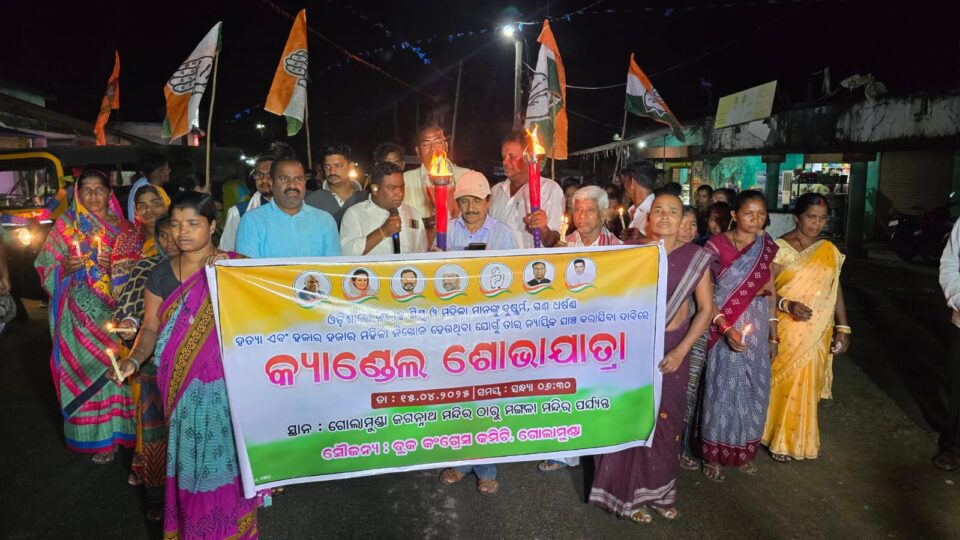 ନାରୀ ଓ ଶିଶୁ ନିର୍ଯାତନା ନ୍ୟାୟ ଦାବିରେ କଂଗ୍ରେସର କ୍ୟାଣ୍ଡେଲ ଶୋଭାଯାତ୍ରା