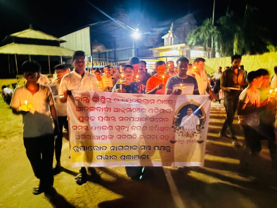 ୨୬ପର୍ଯ୍ୟଟକଙ୍କ ହତ୍ୟା ପ୍ରତିବାଦରେ କ୍ୟାଣ୍ଡେଲ ଶୋଭାଯାତ୍ରା