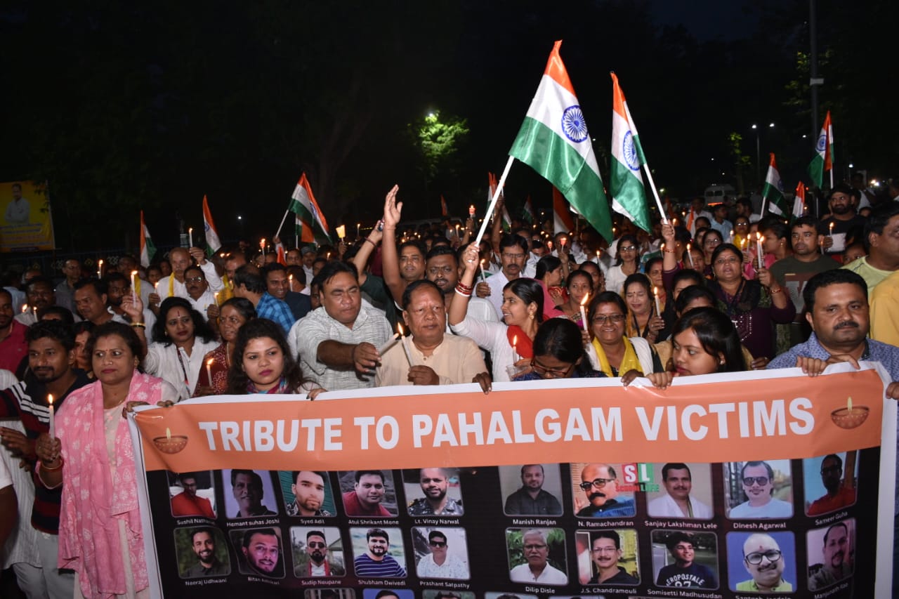 ଜାମ୍ମୁ କାଶ୍ମୀରର ପହଲଗାମର ଆତଙ୍କବାଦୀ ଆକ୍ରମଣରେ ସହିଦଙ୍କ ସ୍ମୃତିରେ କ୍ୟାଣ୍ଡେଲ ଶୋଭାଯାତ୍ରା