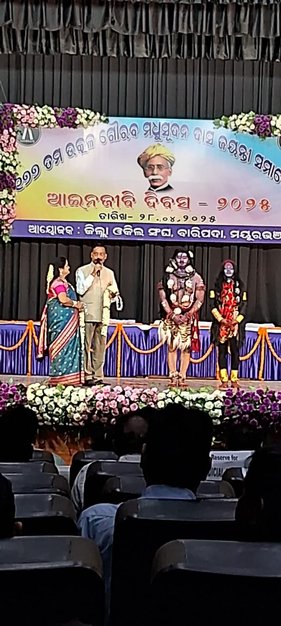 ମୟୁରଭଞ୍ଜ (ବାରିପଦା) – 28/04/2025ରିଖ ସୋମବାର ଦିନ ଜ଼ିଲ୍ଲା ଓକିଲ ସଙ୍ଘ, ବାରିପଦା, ମୟୁରଭଞ୍ଜ ଅନାକୁଲ୍ୟରେ ଓଡିଶାର ସର୍ବ ବୃହତ ଓ ଅଭିଭକ୍ତ ଜ଼ିଲ୍ଲା ମୟୁରଭଞ୍ଜର ସଦର ମହକୁମା ବାରିପଦା ସ୍ଥିତ “ସହିଦ ଶ୍ମୃତି ଭବନ” ଠାରେ “177ତମ ଉତ୍କଳ ଗୌରବ ମଧୁସୂଦନ ଦାସ ଜୟନ୍ତୀ – ଆଇନଜୀବି ଦିବସ – 2025” ଅତି ଆନନ୍ଦ ଉଲ୍ଲାସରେ ପାଳିତ ହୋଇଛି l ଉକ୍ତ ଜୟନ୍ତୀ ସମାରୋହରେ ଉଚ୍ଚ ନ୍ୟାୟାଳୟର ମୁଖ୍ୟ ବିଚାରପତି R. K. ଦାସ ମୁଖ୍ୟ ଅତିଥି ଭାବେ ଯୋଗ ଦେଇଥିବା ସ୍ଥଳେ ଜ଼ିଲ୍ଲାର ମୁଖ୍ୟ ବିଚାରପତି ଅରବିନ୍ଦ ପଟ୍ଟନାୟକ ତଥା ଅନ୍ୟାନ୍ୟ ମାନ୍ୟଗଣ୍ୟ ବ୍ୟକ୍ତି ଯୋଗଦେଇ ଆଇନ ସମ୍ବନ୍ଧୀୟ ବ୍ୟକ୍ତବ୍ୟମାନ ରଖିଥିଲେ l ପ୍ରକାଶ ଥାଉ କି ଏହି ସମାରୋହରେ ସମ୍ପୃକ୍ତ ସମସ୍ତ ବିଚାର ବିଭାଗୀୟ judge ଓ ଅନ୍ୟାନ୍ୟ କର୍ମଚାରୀ ବୃନ୍ଦ ଯୋଗ ଦେଇଥିଲେ l ପୁନଶ୍ଚ ଏଠାରେ ଉଲ୍ଲେଖ କରାଯାଇପାରେ ଯେ ଏହା ଏକ ଆଇନଜୀବି ପରିବାର ସଦୃଶ ଯାହାଫଳରେ କି କୁନି କୁନି ପିଲା ମାନଙ୍କୁ ନେଇ ବିଭିନ୍ନ ପ୍ରକାରର ମନୋହରା, ମନଲୋଭା ଓ ଚିତ୍ତାକର୍ଷକ ସାଂସ୍କୃତିକ କାର୍ଯ୍ୟକ୍ରମ ମାନ ପରିବେଷଣ ହୋଇଯାଇଥିବା ସ୍ଥଳେ ଉପସ୍ଥିତ ଥିବା ସମସ୍ତଙ୍କୁ ମୃଦୁ ପାନୀୟଜଳ ଓ ଚା ପ୍ରଭୃତି ଦେବା ସହିତ ସୁସ୍ୱାଦ ମଧ୍ୟାନ ଭୋଜନର ଆୟୋଜନ ସଂଘର ସଭାପତି, ଉପ-ସଭାପତି, ସାଧାରଣ ସମ୍ପାଦକ, ସହ ସମ୍ପାଦକ, କୋଷାଧକ୍ଷ ସମେତ ସମସ୍ତ ସଂଘର ସଦଶ୍ୟ ଓ ସଦଶ୍ୟା ମାନଙ୍କ ସହଯୋଗ କ୍ରମେ ବ୍ୟବସ୍ଥା ମଧ୍ୟ କରାଯାଇଥିଲା l ବାସ୍ତବରେ ଉକ୍ତ ସମାରୋହଟି ଅନେକ ଚିତ୍ତାକର୍ଷକ ହେବା ସଙ୍ଗେ ସଙ୍ଗେ ମନ ମୁଗ୍ଧକର ହୋଇଥିବାର ଲୋକ ମାନଙ୍କ ମଧ୍ୟରେ ପ୍ରକାଶ ହୋଇଥିବାର ସୂଚନା ମିଳେ l ବର୍ତ୍ତମାନ ଆସନ୍ତୁ ଦେଖିବା ଏହାର ଝଲକମାନ l