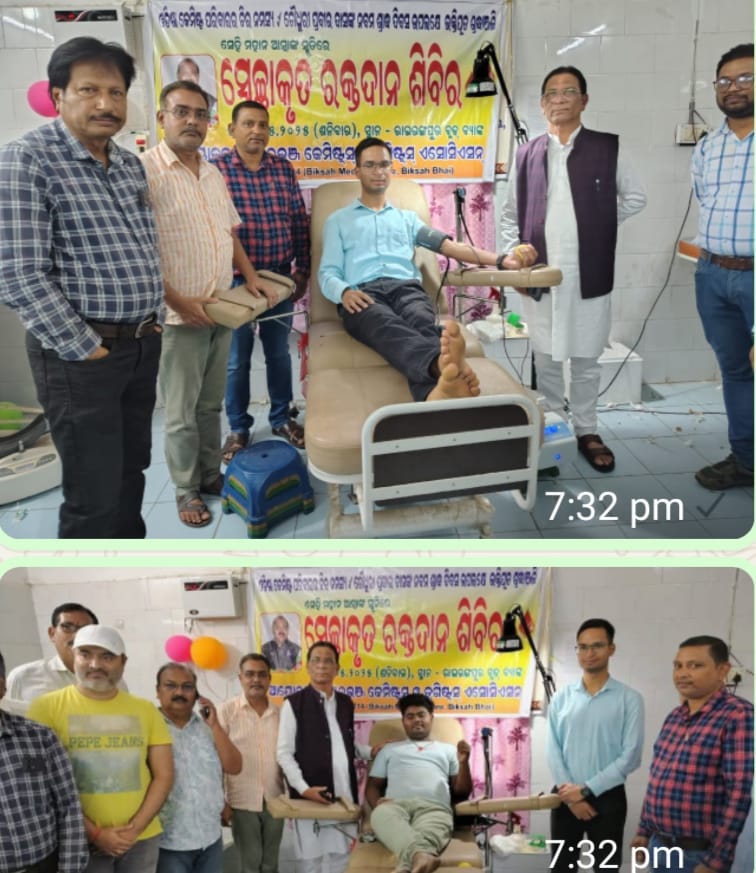 ରାଇରଙ୍ଗପୁର ଉପଖଣ୍ଡ ଚିକିତ୍ସାଳୟରେ ମୟୂରଭଞ୍ଜ କେମିଷ୍ଠ ଏଣ୍ଡ ଡ୍ରଗିଷ୍ଟ ୟୂନିଅନ ତରଫରୁ ୫୦ ୟୂନିଟ୍ ରକ୍ତ ସଂଗ୍ରହ