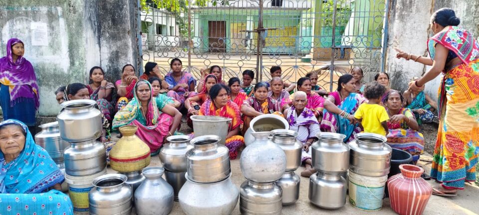 ପମ୍ପ ଘର ଓ ପଞ୍ଚାୟତରେ ତାଲା ଠୁଙ୍କି ଧାରଣାରେ ବସିଲେ ମହିଳା