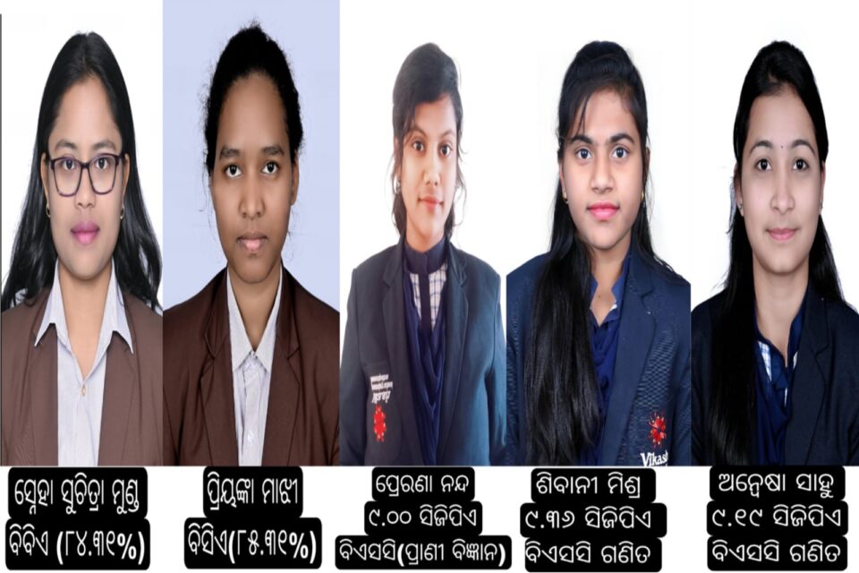 ଭବାନିପାଟଣା:କଳାହାଣ୍ଡି ଜିଲା ଭବାନୀପାଟଣା ସ୍ଥିତ ମା ମାଣିକେଶ୍ଵରୀ ବିଶ୍ୱବିଦ୍ୟାଳୟ ଦ୍ବାରା ପରିଚାଳିତ ସ୍ନାତକ ପରୀକ୍ଷାରେ ସ୍ଥାନୀୟ ବିକାଶ ଡିଗ୍ରୀ ମହାବିଦ୍ୟାଳୟର ଛାତ୍ରଛାତ୍ରୀ ସଫଳ ପ୍ରଦର୍ଶନ କରିଛନ୍ତି। ଛାତ୍ରୀ ସ୍ନେହା ସୁଚିତ୍ରା ମୁଣ୍ଡ ବିବିଏ ବିଭାଗରେ ଓ ପ୍ରିୟଙ୍କା ମାଝି ବିସିଏ ବିଭାଗ ରେ ବିଶ୍ବବିଦ୍ୟାଳୟ ଟପ୍ପର ହୋଇଛନ୍ତି।ଏହାସହ ଉକ୍ତ ବିଭାଗର ଶତପ୍ରତିଶତ ଛାତ୍ରଛାତ୍ରୀ ସଫଳତା ପାଇଛନ୍ତି।ସେହିପରି ଗଣିତ ବିଭାଗରେ ଶିବାନୀ ମିଶ୍ର ୯.୩୬ ସିଜିପିଏ ଗ୍ରେଡ ମାର୍କ ଓ ଅନ୍ଵେଷା ସାହୁ ୯.୧୯ ସିଜିପିଏ ଗ୍ରେଡ ମାର୍କ ରଖିଥିବା ବେଳେ ପ୍ରାଣୀ ବିଜ୍ଞାନ ବିଭାଗରେ ପ୍ରେରଣା ନନ୍ଦ ୯.୦୦ ସିଜିପିଏ ଗ୍ରେଡ ମାର୍କ ଅର୍ଜନ କରିଛନ୍ତି ।ଏପଟେ ବିଜ୍ଞାନ ବିଭାଗରେ ମଧ୍ୟ ସମସ୍ତ ଛାତ୍ରଛାତ୍ରୀ ପ୍ରଥମ ଶ୍ରେଣୀ ନିପୁଣତାର ସହିତ ପାସ କରି ଭଲ ପରୀକ୍ଷା ଫଳ ପ୍ରଦର୍ଶନ କରିଛନ୍ତି। ଏହି ସଫଳତା ପାଇଁ ଅନୁଷ୍ଠାନର ନିର୍ଦ୍ଦେଶକ ଡି. ଶ୍ୟାମ,ଅନ୍ୟତମ ନିର୍ଦ୍ଦେଶକ ଡି.ରାମ କୁମାର,ଶିକ୍ଷା ପ୍ରଭାରୀ ଡି.ବିଜୟା,ବିକାଶ ଅନୁଷ୍ଠାନର ପରିଚାଳନା କମିଟି ସଦସ୍ୟା ଡି.ପଦ୍ମିନୀ, ସରସ୍ଵତୀ ଇନଷ୍ଟିଚ୍ୟୁଟ ଅଫ ଆଇ .ଟି.ଏଣ୍ଡ୍ ମ୍ୟାନେଜ୍ମେଣ୍ଟ୍ ଅଧ୍ୟକ୍ଷ ଡ଼. ସୁଦୀପ୍ତ ଜେନା,ସରସ୍ଵତୀ +୩ ବିଜ୍ଞାନ ବିଭାଗ ଅଧ୍ୟକ୍ଷ ଡ଼. ଆଦିତ୍ୟ ପଟ୍ଟନାୟକ ସମସ୍ତ ଛାତ୍ରୀଛାତ୍ରଙ୍କୁ ଅଭିନନ୍ଦନ ଓ ଶୁଭେଚ୍ଛା ଜଣାଇଛନ୍ତି ।