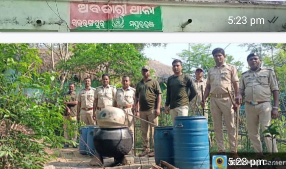 ରାଇରଙ୍ଗପୁର ଅବକାରୀ ବିଭାଗର ଚଢ଼ାଉ !ତେଣ୍ଟପୋଷୀ ଗ୍ରାମରେବିପୁଳ ପରିମାଣର ଦେଶୀ ମଦ ଓ ମହୁଲ ପୋଚ ଆନୁମାନିକ .୩ ଲକ୍ଷ ୫୦ ହଜାର ଟଙ୍କାର ସାମଗ୍ରୀ ଜବତ