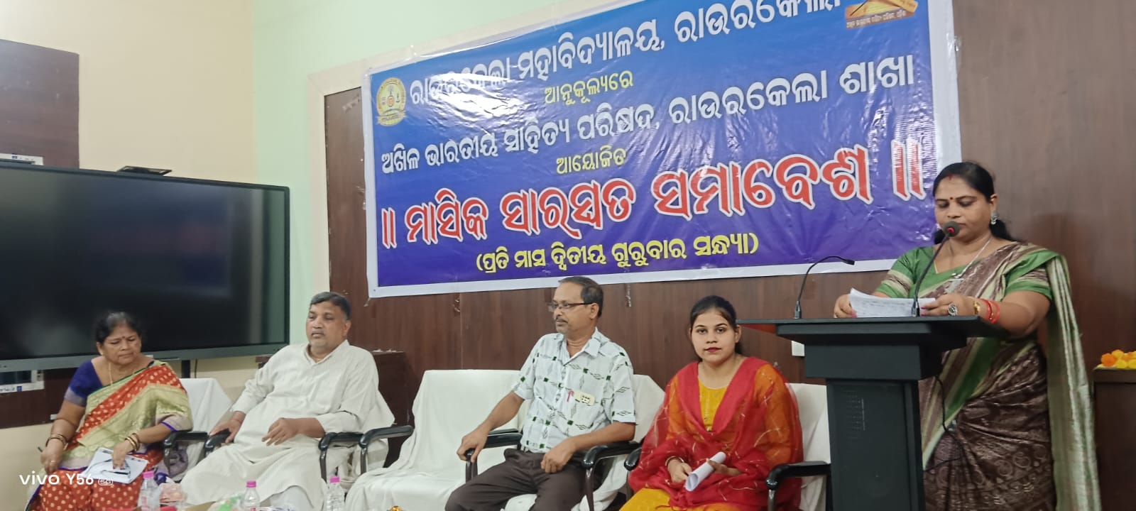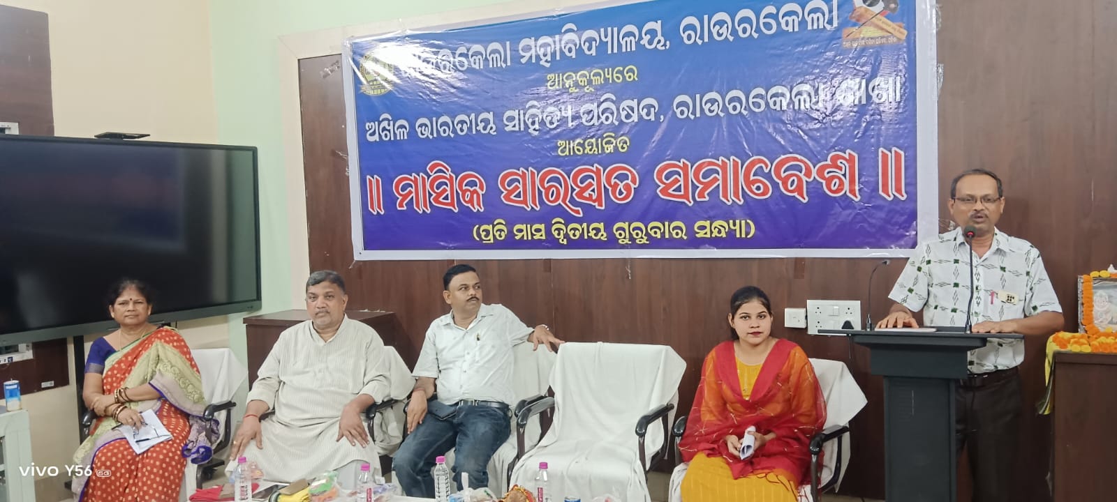 ରାଉରକେଲା: ଅଖିଳ ଭାରତୀୟ ସାହିତ୍ୟ ପରିଷଦ, ରାଉରକେଲା ଶାଖା ଓ ରାଉରକେଲା କଲେଜ, ରାଉରକେଲାର ମିଳିତ ଆନୁକୂଲ୍ୟରେ ମାସିକ ସାରସ୍ଵତ ସମାବେଶ କଲେଜ ପରିସରରେ ଅନୁଷ୍ଠିତ ହୋଇଯାଇଛି। ପରିଷଦର ସଭାପତି ତଥା ରାଉରକେଲା କଲେଜର ଅଧ୍ୟକ୍ଷ ଡ. ରବୀନ୍ଦ୍ର କୁମାର ଜେନାଙ୍କ ସଭାପତିତ୍ବ ଓ କରୁଣାକର ପାଟ୍ଟଶାଣୀଙ୍କ ଆବାହକତ୍ଵରେ ଆୟୋଜିତ ଏହି