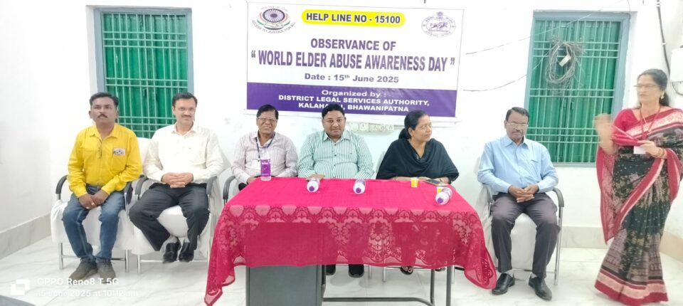 କଳାହାଣ୍ଡି ଜିଲ୍ଲା ଆଇନସେବା ପ୍ରାଧିକରଣ ପକ୍ଷରୁ ତା; ୧୫.୦୬.୨୦୨୫ ରିଖ ରବିବାର ଦିନ କଳାହାଣ୍ଡି ଜିଲ୍ଲା ଆଇନ ସେବା ପ୍ରାଧୁକରଣ ପରିସର ଠାରେ ଆଜି ବିଶ୍ଵ ବୟସ୍କ ନିର୍ଯାତନା ସଚେତନତା ଦିବସ ପାଳିତ ହୋଇଯାଇଛି ।ଏହି ଦିବସରେ ବୟସ୍କ ବ୍ୟକ୍ତିବିଷେଶଙ୍କ ପାଇଁ ବିଭିନ୍ନ ଆଇନ ସହାୟତା ଉପରେ ଏକ ସଚେତନତା କାର୍ଯ୍ୟକ୍ରମ ଅନୁଷ୍ଠିତ ହୋଇଥିଲା । ଏଥିରେ ଜାତୀୟ ଆଇନ ସେବା ପ୍ରାକରଣର ଟୋଲ୍ ଫ୍ରି ନମ୍ବର ୧୫୧୦୦ ଓ ରାଜ୍ୟ ଆଇନ ସେବା ପ୍ରାଧୁକରଣ ଦ୍ୱାରା ପ୍ରଦାନ କରାଯାଉଥିବା ବିଭିନ୍ନ ଆଇନ ଉପରେ ଆଲୋକପାତ କରାଯାଇଥିଲା । ସଚିବ, ଜିଲ୍ଲା ଆଇନ ସେବା ପ୍ରାଧୀକରଣ, କଳାହାଣ୍ଡି, ସ୍ନିଗଧା ପଣ୍ଡା, ଅଧକ୍ଷ୍ୟ, ଶ୍ରୀ ବିଜୟ କୁମାର ହୋତା, ସଚିବ, ଗିରିଜା ସଙ୍କର ବେହେରା, ବରିଷ୍ଠ ନାଗରିକ ମଞ୍ଚ କଳାହାଣ୍ଡି ଓ ଅନ୍ୟାନ୍ୟ ସଦସ୍ୟ ବୃନ୍ଦ ,ଚିଫ୍ ଲିଗାଲ ଏଡ୍ ଡିଫେନ୍ସ୍ କାଉନସିଲ୍,ଡେପୁଟି ଚିଫ୍, ଲିଗାଲ ଏଡ୍ ଡିଫେନ୍ସ୍ କାଉନସିଲ, ଆସିଷ୍ଟାଣ୍ଟ ଲିଗାଲ ଏଡ୍ ଡିଫେନ୍ସ୍ କାଉନସିଲ, ଫ୍ରଣ୍ଟ ଅଫିସ ରିଟେନର ଶ୍ରୀମତି ଦିପ୍ତିରାଣି ପଟ୍ଟନାୟକ ପ୍ରମୁଖ ଏହି କାର୍ଯ୍ୟକ୍ରମରେ ଅଂଶଗ୍ରହଣ କରିଥିଲେ । ଜାତୀୟ ଆଇନ ସେବା ପ୍ରାଧୀକରଣ ଟୋଲଫ୍ରି ନମ୍ବର ବିସୟରେ ଅବଗତ କରାଇବା ସହ ବିଭିନ୍ନ ଅସୁବିଧା ସମୟରେ ଏହି ନମ୍ବରର ସାହାର୍ଯ୍ୟ ନେବାପାଇଁ କହିଥିଲେ । ଶେଷରେ ଏକ ଖୋଲା ଆଲୋଚନାରେ ଉପସ୍ଥିତ ଅତିଥି ମାନେ ଅଂଶଗ୍ରହଣକାରୀଙ୍କ ବିଭିନ୍ନ ପ୍ରଶ୍ନର ଉତ୍ତର ରଖିଥିଲେ l