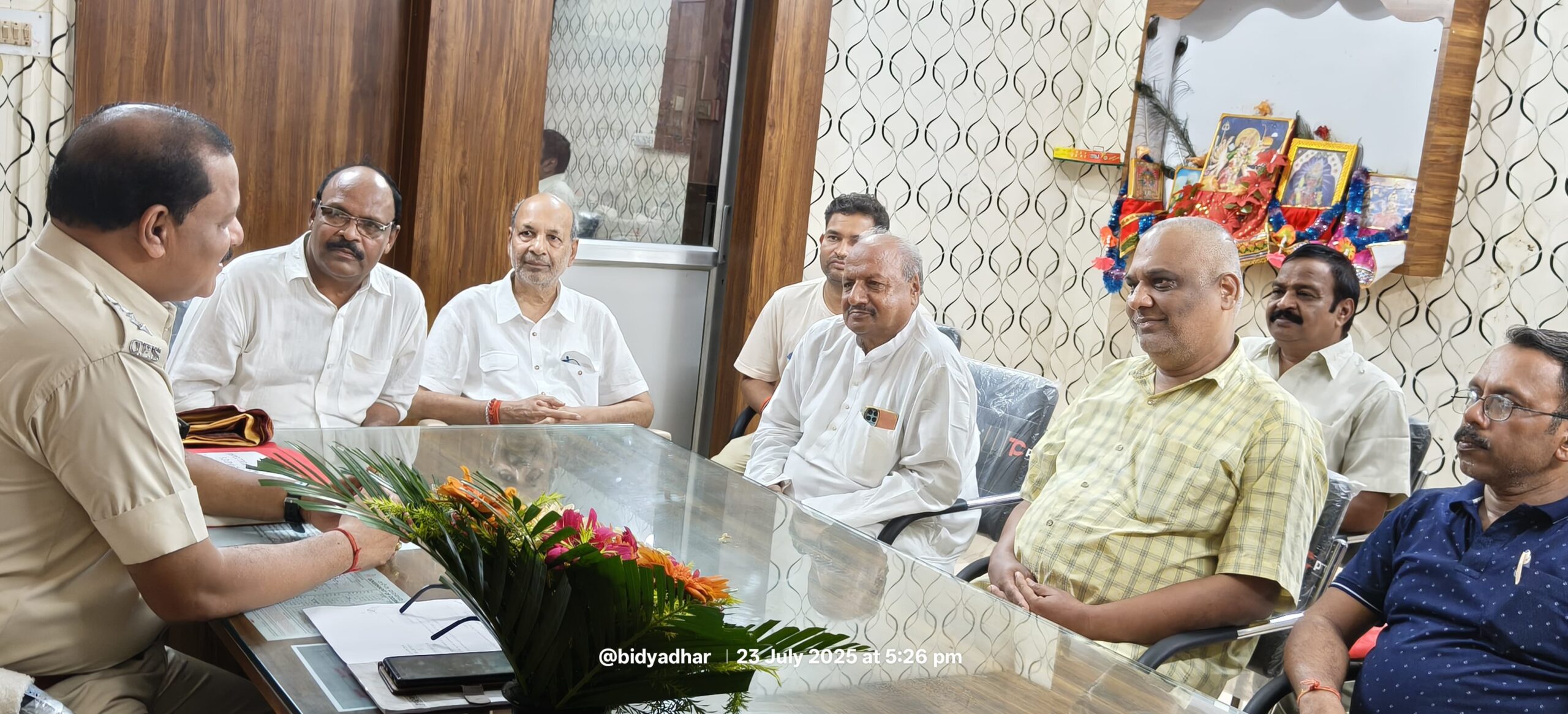 ମେହେର, ସହ ସମ୍ପାଦକ ଅତୁଲ୍ୟ କୁମାର ମେହେର, ଶ୍ରବଣ କୁମାର ଅଗ୍ରୱାଲ, କୋଷାଧ୍ୟକ୍ଷ ସରୋଜ କୁମାର ସାହୁ, ବରିଷ୍ଠ ସଦସ୍ୟ ସୁକଲାଲ ଅଗ୍ରୱାଲ, ଜଗନ୍ନାଥ ସେବା ସମିତି ସଭାପତି ବିଷ୍ଣୁ ପ୍ରସାଦ ଅଗ୍ରୱାଲ,ସାମ୍ୱାଦିକ ବୈଦ୍ୟନାଥ ବେହେରା, ପ୍ରମୁଖ ଏସଡିପିଓ ଶ୍ରୀ ଭୋଇ ଙ୍କୁ ଉପଢୌକନ ଓ ପୁଷ୍ପ ଗୁଚ୍ଛ ଦେଇ ସ୍ଵାଗତ କରିଥିଲେ । ଏହି ଅବସରରେ ଧର୍ମଗଡ ସହର ରେ ଥିବା ଟ୍ରାଫିକ ସମସ୍ୟା ର ନିୟନ୍ତ୍ରଣ, ପୁଲିସ ର ରାତ୍ରୀକାଳୀନ ପେଟ୍ରୋଲିଂ ବ୍ୟବସ୍ଥା ସମେତ ଅନ୍ୟାନ୍ୟ ବିଷୟ ଉପରେ ଆଲୋଚନା କରାଯାଇଥିଲା।ଅଞ୍ଚଳ ରେ ଆଇନ ଶୃଙ୍ଖଳା ବ୍ୟବସ୍ଥା ସୁଦୃଢ଼ ପାଇଁ ଏସ ଡି ପି ଓ ଶ୍ରୀ ଭୋଇ ମଧ୍ଯ ସମସ୍ତ ଙ୍କ ସହଯୋଗ କାମନା କରିଥିଲେ।
