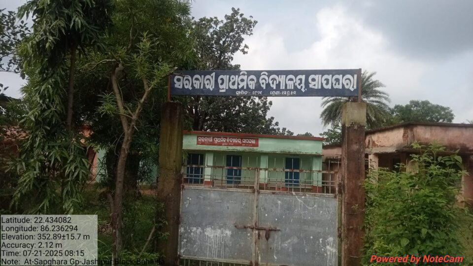 ମୟୂରଭଂଜ – ୨୪/୦୭ —  ମୟୁରଭଞ୍ଜ ଜିଲ୍ଲାର ବହଳଦା ବ୍ଲକର ସୁରୁଦା- ଯଶିପୁର ପଞ୍ଚାୟତ ଅନ୍ତର୍ଗତ ସାପଘରା ପ୍ରାଥମିକ ବିଦ୍ୟାଳୟରେ ଜଣେ ଶିକ୍ଷୟତ୍ରୀ ରେ ଶିଶୁବାଟିକାରୁ ୫ ମ ଶ୍ରେଣୀ ଦୁଇଟି ଶ୍ରେଣୀଗୃହରେ ଚାଲୁଛି ।