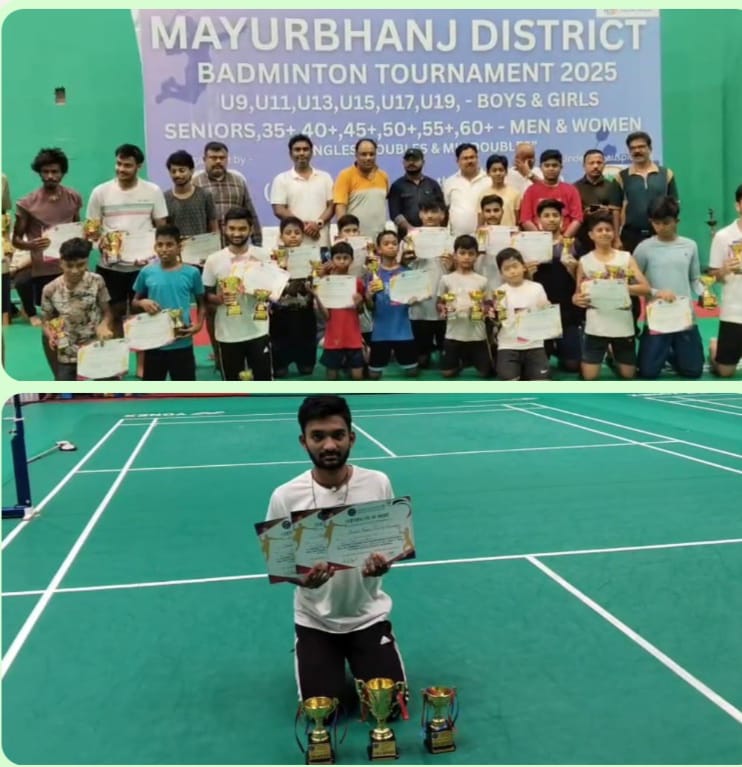 ମୟୂରଭଂଜ ଜିଲ୍ଲାସ୍ତରୀୟ ୨୦୦୨୫ ତ୍ରିଦୀଵସୀୟ ବେଡମିଣ୍ଟନ ଟୁର୍ଣ୍ଣାମେଣ୍ଟରେ ୧୭ ବର୍ଷରୁ କମ ,୧୯ ବର୍ଷରୁ କମ ଏବଂ ବରିଷ୍ଠ ବିଭାଗରେ ଏକକ ଭାବେ ରେକର୍ଡ ଚମ୍ପିୟାନ