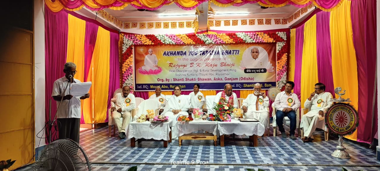 ଆସିକା,୮/୮/୨୫ ପ୍ରଜାପିତା ବ୍ରହ୍ମାକୁମାରୀ ଇଶ୍ବରୀୟ ବିଶ୍ବବିଦ୍ୟାଳୟ ସ୍ଥାନୀୟ ସେବା କେନ୍ଦ୍ର ଶାନ୍ତି ଶକ୍ତି ଭବନର ନବ ନିର୍ମିତ ଜ୍ଞାନ ମଣ୍ଡପରେ ଏକ ଦିବସୀୟ ଅଖଣ୍ଡ ଯୋଗ ତପସ୍ୟା ଶିବିର ଅନୁଷ୍ଠିତ ହୋଇଯାଇଛି l ଈଶ୍ୱରୀୟ ବିଶ୍ଵ ବିଦ୍ୟାଳୟର ବ୍ରହ୍ମପୁର ସବ ଜୋନ୍ ପ୍ରଭାରୀ ରାଜଯୋଗିନୀ ମାଳା ଦିଦିଙ୍କ ପୌରୋହିତରେ ଆୟୋଜିତ ଏହି କାର୍ଯ୍ୟକ୍ରମରେ ଇଶ୍ବରୀୟ ବିଶ୍ବବିଦ୍ୟାଳୟର କୃଷି ଓ ଗ୍ରାମ ବିକାଶ ପ୍ରଭାଗ ମାଉଣ୍ଟ ଆବୁ ରାଜସ୍ଥାନରୁ ରାଷ୍ଟ୍ରୀୟ