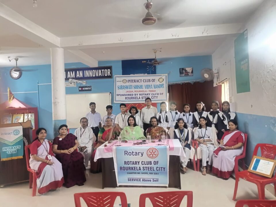 Rourkela: The 5th installation ceremony of Intract club of SSVM (Saraswati Sishu Vidya Mandir) Jagda sponsored by Rotary club of Rourkela Steel City was held in the school premises on 21st August 2025. Rtn Nibedita Mishra was the chief guest. In her address she emphasis the importance of helping the needy person. As a token of appreciation she gave small gifts to Principal and two guide teachers from our club. Principal Suraya Narayan Das gave welcome address. Dr Suraj Nayak was the chief speaker. In his motivational speech he motivated students how to be successful in future and the key rules for that.