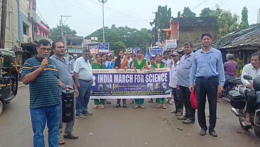 ଭୁବନ: ତା ୨୭.୦୮.୨୦୨୫ ରିଖ: ଓଡ଼ିଶା ବିଜ୍ଞାନ ଚେତନା ମଞ୍ଚ ଢେଙ୍କାନାଳ ଜିଲ୍ଲା ଭୁବନ ଶାଖା ଆନୁକୁଲ୍ୟରେ ଭୁବନ ବ୍ଲକ୍ ଆବାହକ ଶ୍ରୀଧର ପୃଷ୍ଟିଙ୍କ ସଂଯୋଜନା କ୍ରମେ ଭାରତରେ ବିଜ୍ଞାନ ପାଇଁ ପଦଯାତ୍ରା -୨୦୨୫ ଗୋଡ଼ିପୋଖରୀଛକରୁ ବାହାରି ବସଷ୍ଟାଣ୍ଡ ଦେଇ ନଗର ପରିକ୍ରମା କରିଥିଲା ଓ ଭୁବନ ସରସ୍ଵତୀ ଶିଶୁ ମନ୍ଦିରରେ ସମାପ୍ତ ହୋଇଥିଲା। ଏହି ଉପଲକ୍ଷେ ଶ୍ରୀଧର ପୃଷ୍ଟିଙ୍କ ଆବାହକତ୍ୱ ଓ ପୋରୋହିତ୍ୟରେ ଭୁବନ ସରସ୍ଵତୀ ଶିଶୁମନ୍ଦିର ପରିସରରେ ଏକ ବିଜ୍ଞାନ ସଚେତନତା ସଭା ଅନୁଷ୍ଠିତ ହୋଇଯାଇଛି।ଭାରତ ବ୍ରେକ୍ ଥ୍ରୁ ସାଇନ୍ସ ସୋସାଇଟିର ଜାତୀୟ ଉପସଭାପତି ତଥା ଓଡ଼ିଶା ରାଜ୍ୟ ବିଜ୍ଞାନ ଚେତନା ମଞ୍ଚର ସଂପାଦକ,ରେଭେନ୍ସା ବିଶ୍ୱବିଦ୍ୟାଳୟର ରସାୟନ ବିଜ୍ଞାନ ବିଭାଗର ପ୍ରାଧ୍ୟାପକ କେଏସ୍ କେ ଭରଦ୍ବାଜ ମୁଖ୍ୟଅତିଥି ଭାବରେ ଯୋଗଦାନ
