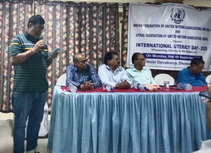 ଢେଙ୍କାନାଳ : ତା.୦୮.୦୯.୨୦୨୫ରିଖ : ସ୍ଥାନୀୟ ହୋଟେଲ୍ ଦେବକନ୍ୟା କନ୍ଫରେନ୍ସ ହଲ୍ ରେ ଇଣ୍ଡିଆନ୍ ଫେଡେରେସନ୍ ଅଫ୍ ୟୁନାଇଟେଡ୍ ନେସନ୍ ସ୍ ଆସୋସିଏସନ୍(ଇଫୁନା ) ଓ ଉତ୍କଳ ଫେଡେରେସନ୍ ଅଫ୍ ୟୁନାଇଟେଡ୍ ନେସନସ୍ ଆସୋସିଏସନ୍ (ଉଫୁନା) ପକ୍ଷରୁ ବିଶ୍ଵ ସାକ୍ଷରତା ଦିବସ -୨୦୨୫ ପାଳିତ ହୋଇଯାଇଛି।ଏହି ଉପଲକ୍ଷେ ଅନୁଷ୍ଠିତ ସଭାରେ ଇଫୁନାର ମହାସଚିବ ତଥା ୱାର୍ଲ୍ଡ ଫେଡ୍ ରେସନ୍ ଅଫ୍ ୟୁନାଇଟେଡ୍ ନେସନସ୍ ଆସୋସିଏସନ୍ ର ଭାଇସ୍ ଚେୟାରମ୍ୟାନ୍ ସୁରେଶ ଶ୍ରୀବାସ୍ତବ ଆଭାସୀ ମାଧ୍ୟମରେ ଉଦ୍ଘାଟନ କରିଥିଲେ।ଏହି ସଭାରେ ଇଫୁନାର ଜାତୀୟ ଉପ-ସଭାପତି ତଥା ଉଫୁନାର ରାଜ୍ୟ ସଭାପତି ଆଡ୍ ଭୋକେଟ୍ ମନୋରଞ୍ଜନ ପଟ୍ଟନାୟକ ଅଧ୍ୟକ୍ଷତା କରିଥିଲେ । କହିଲେ ଯେ ୨୦୨୫ ମସିହା ସମସ୍ତଙ୍କର ସର୍ବାଙ୍ଗୀନ ବିକାଶର ବର୍ଷ ହେଉ ଓ ସାକ୍ଷରତା ସଚେତନତା ହିଁ ସୁରକ୍ଷା ବୋଲି ଦୃଢ଼ ଅଭିବ୍ୟକ୍ତି ପ୍ରଦାନ କରିଥିଲେ। ଅନ୍ୟତମ ବିଶିଷ୍ଟ ମୁଖ୍ୟଅତିଥି ଭାବରେ ଯୋଗଦାନ କରି ପୂର୍ବତନ ମନ୍ତ୍ରୀ ଡ.ନୃସିଂହ ଚରଣ ସାହୁ ସ୍ଵୀୟ ବକ୍ତବ୍ୟରେ ଆମ ଅଞ୍ଚଳର ସାକ୍ଷରତା,ମୋ ଦାୟୀତ୍ଵ।ସାକ୍ଷରତା ସଚେତନତା ହିଁ ସୁରକ୍ଷା ଓ ସୁରକ୍ଷା ହିଁ ଜୀବନ ରକ୍ଷା,ସମସ୍ତ ସାକ୍ଷରତାର ଉନ୍ନତିରେ ହିଁ ସମାଜର ପ୍ରଗତି ସମ୍ଭବ ବୋଲି ଦୃଢ଼ ମତପୋଷଣ କରିଥିଲେ। ଅନ୍ୟତମ ମୁଖ୍ୟବକ୍ତା ଭାବରେ ପୂର୍ବତନ ମନ୍ତ୍ରୀ ନବୀନ ଚନ୍ଦ୍ର ନାରାୟଣ ଦାସ ଯୋଗଦାନ
