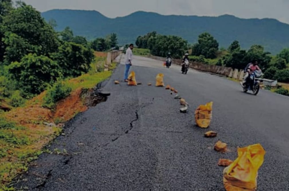 ୧- ବିପଦ ସଂକୁଳ ଅବସ୍ଥାରେ ରାସ୍ତା ମଝିରେ ଖାଇ , ୨– ରାସ୍ତା ପାର୍ଶ୍ଵରେ ଗାର୍ଡ ୱାଲ ନଥିବାରୁ ମାଟି ଖାଇ ହୋଇ ପିଛୁ ରାସ୍ତା ଖରାପ ହୋଉଛି