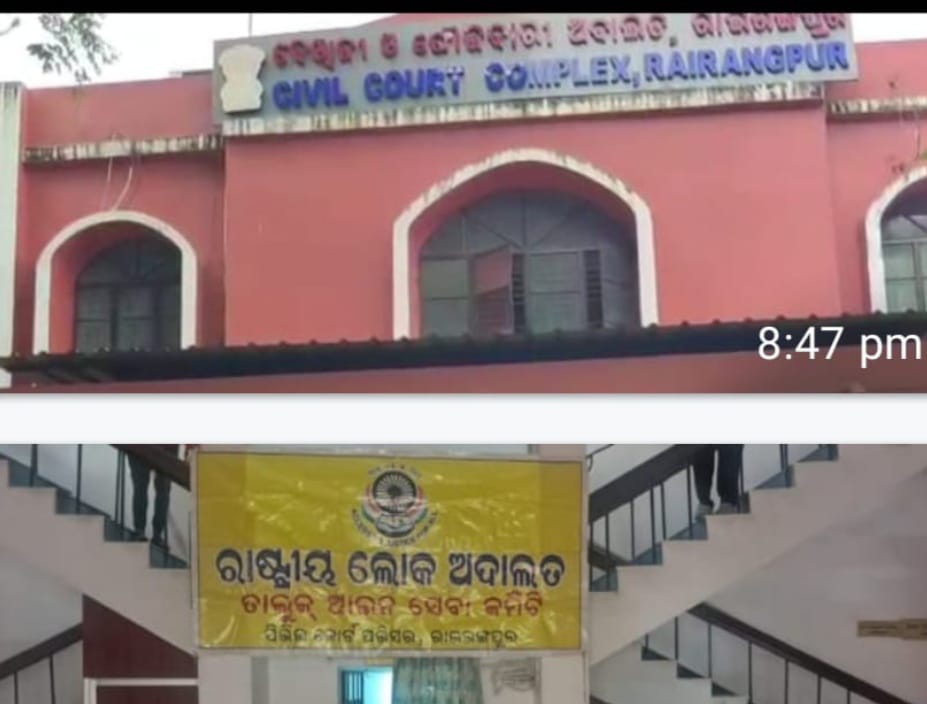 ରାଇରଙ୍ଗପୁର ସିଭିଲ କୋର୍ଟରେ ତୃତୀୟ ରାଷ୍ଟ୍ରୀୟ ଲୋକ ଅଦାଲତ! ପଂଜିକୃତ ୨୧୨ ଟି ମାମଲାରୁ ୧୩୯ ଟି ତତ୍କାଳ ଫଇସଲା