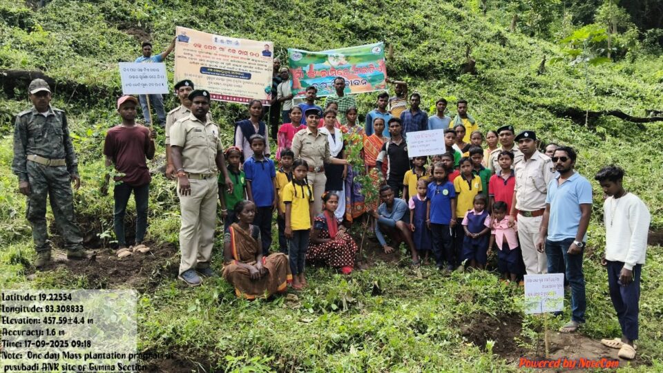 Rayagada, Sept 17: A unique tree plantation programme was held today under the Guma Section of the Rayagada Forest Range, where saplings were planted in the name of Ma (Mother Goddess), blending devotion with environmental conservation. The event covered several villages including Guma, Pusubadi, Kiyapadu, Dumapai, Tileru, Udaypur, Kurumulumunda, and Manduluguda.